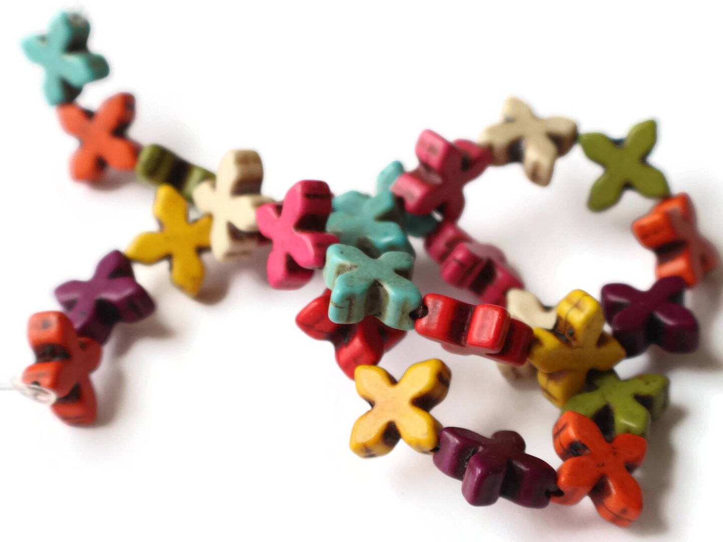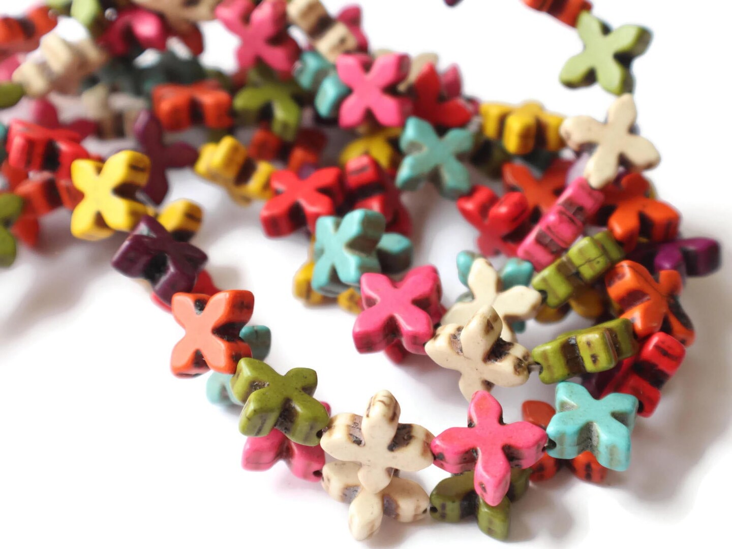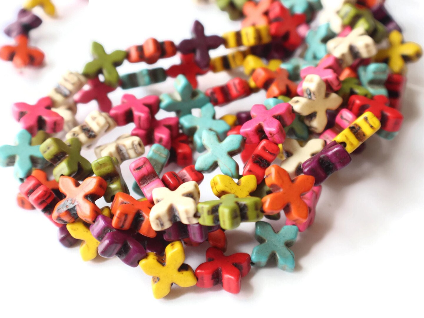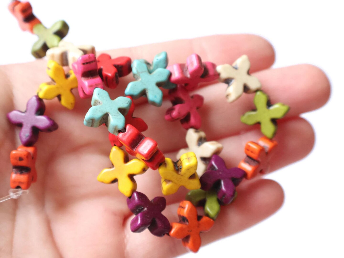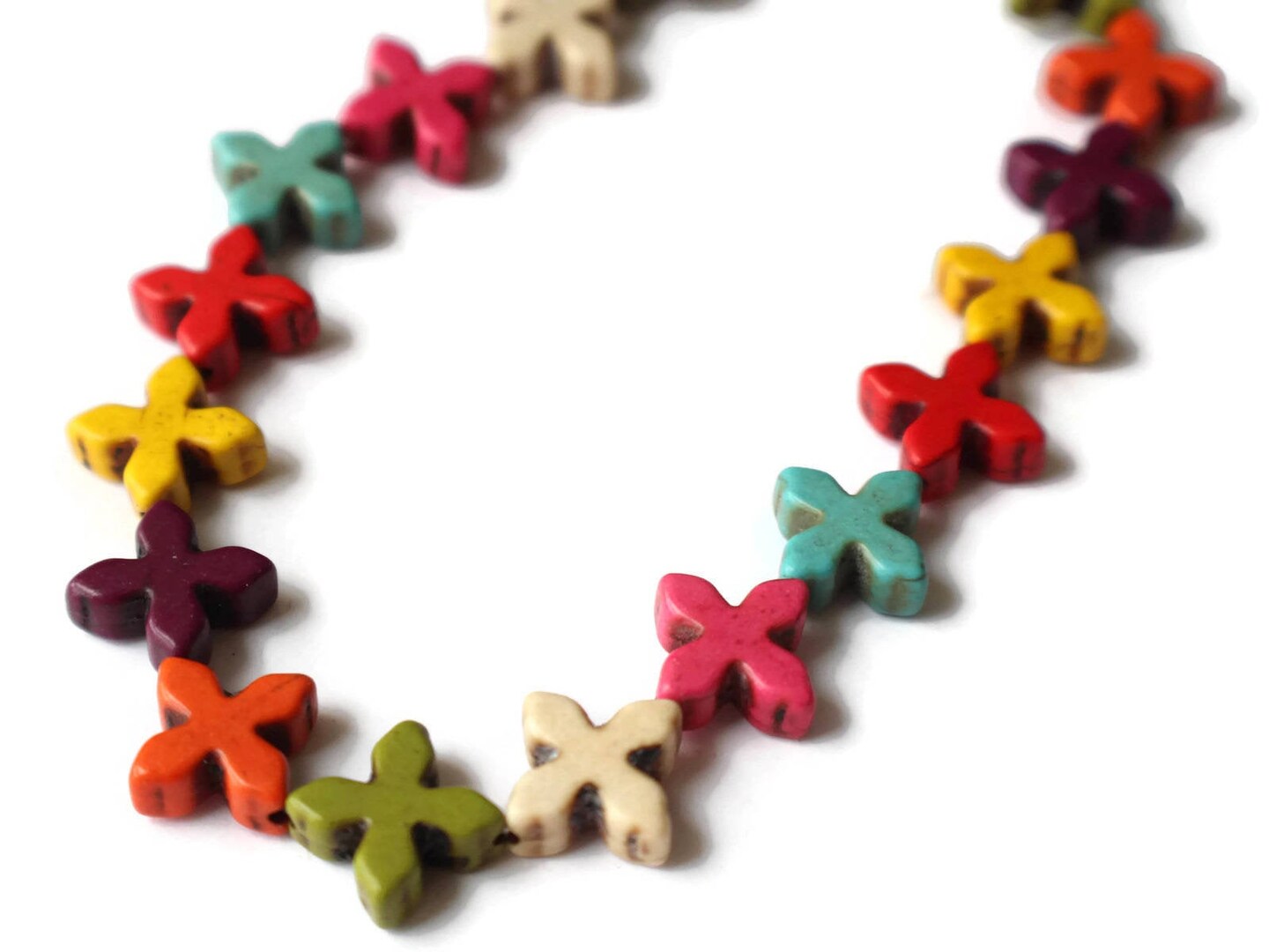 26 15mm Howlite Cross Dyed Gemstone Beads Mixed Color Beads