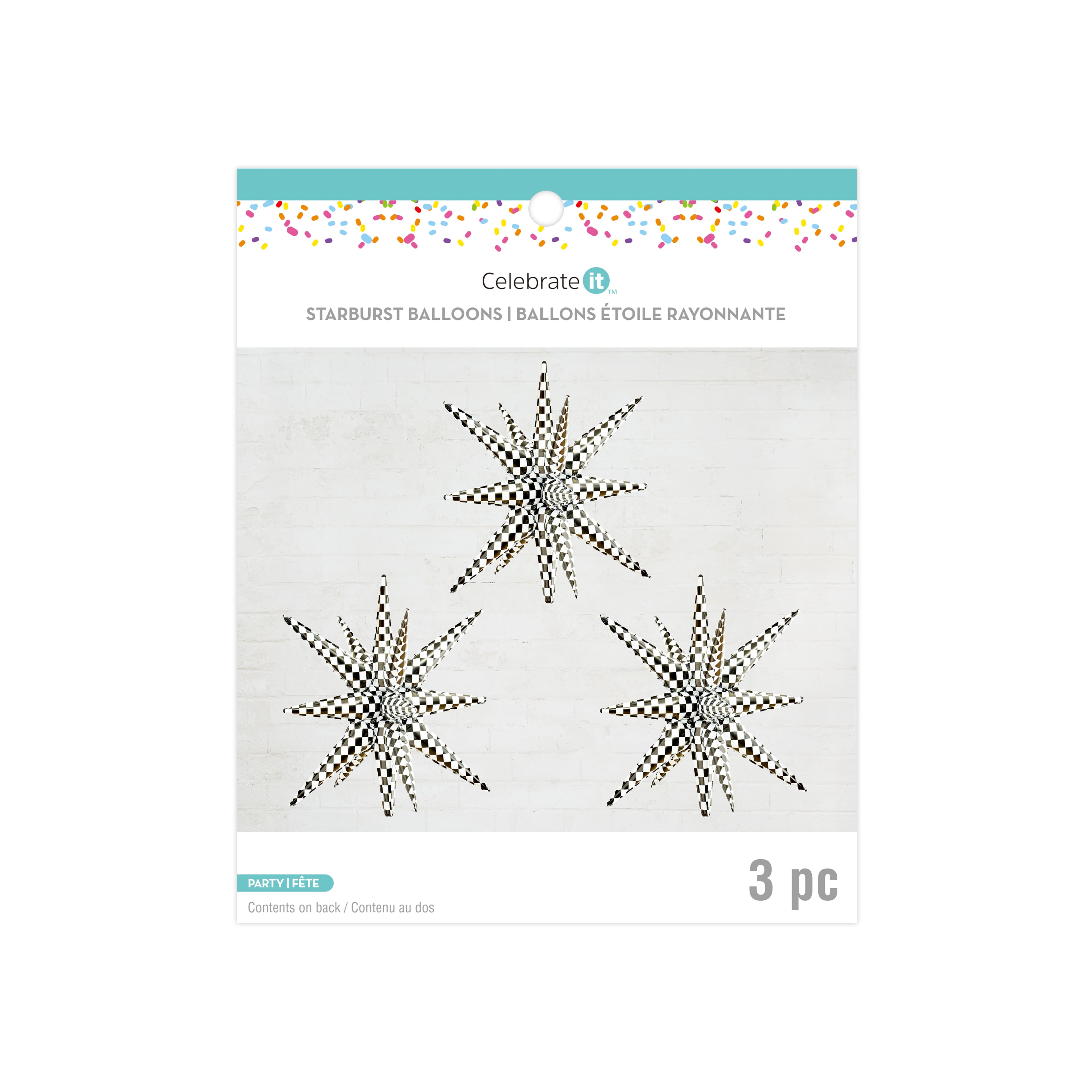 26" Black & White Checker Starburst Foil Balloons, 3ct. by Celebrate It™