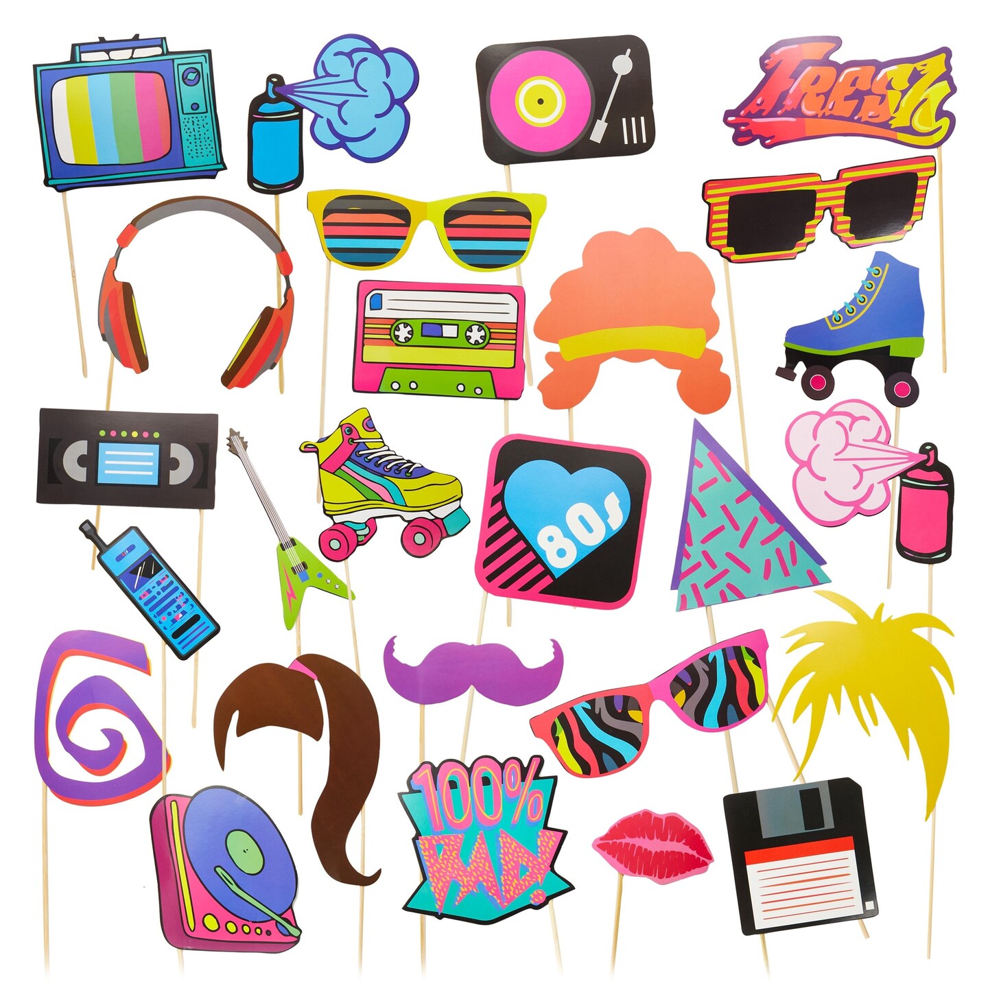 26 Pack Pre-Assembled 80s Photo Booth Props, Retro Party Decorations