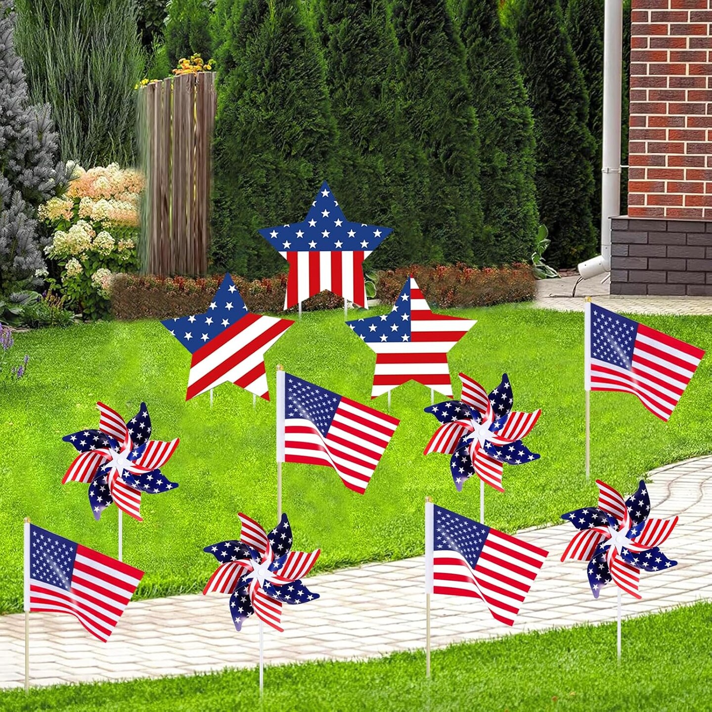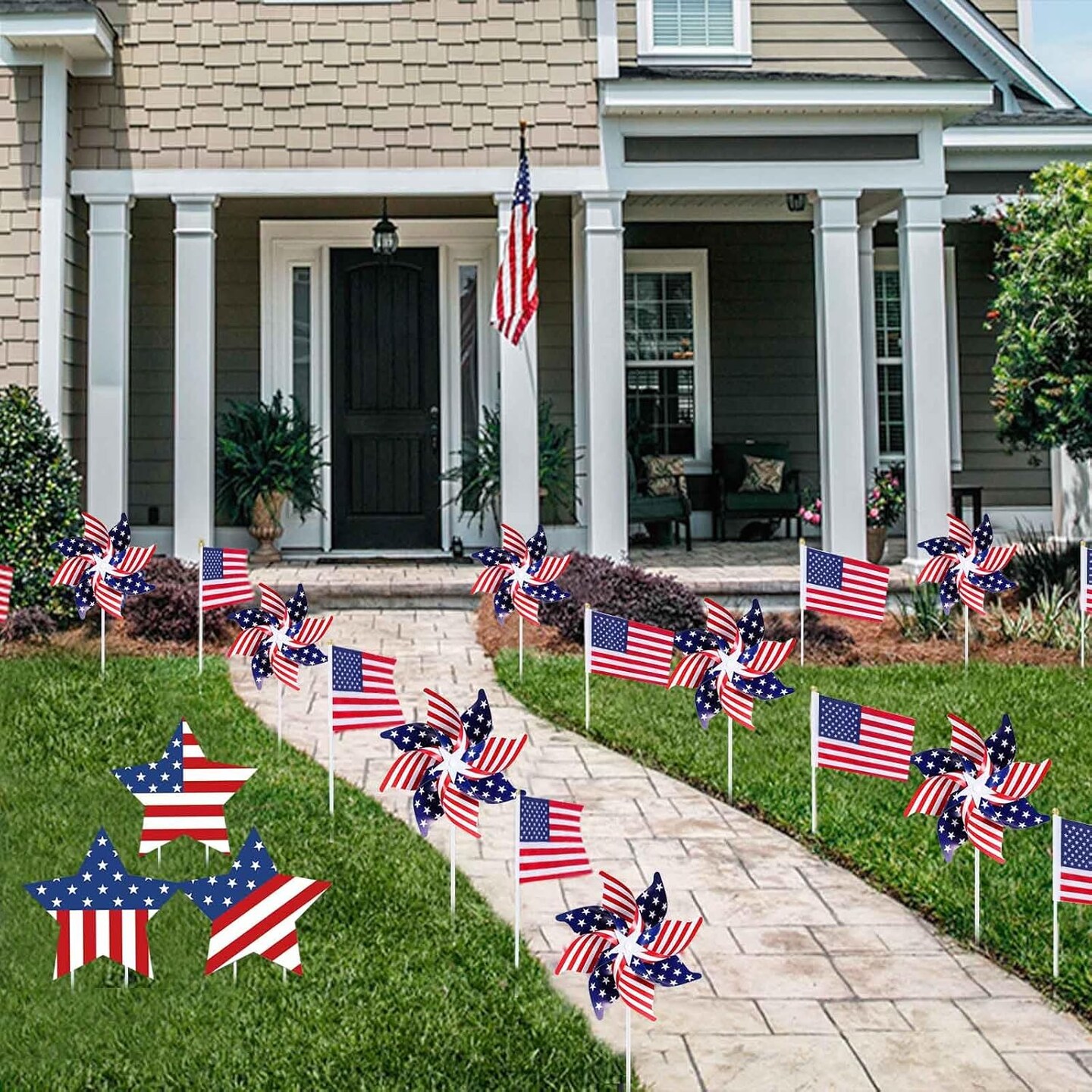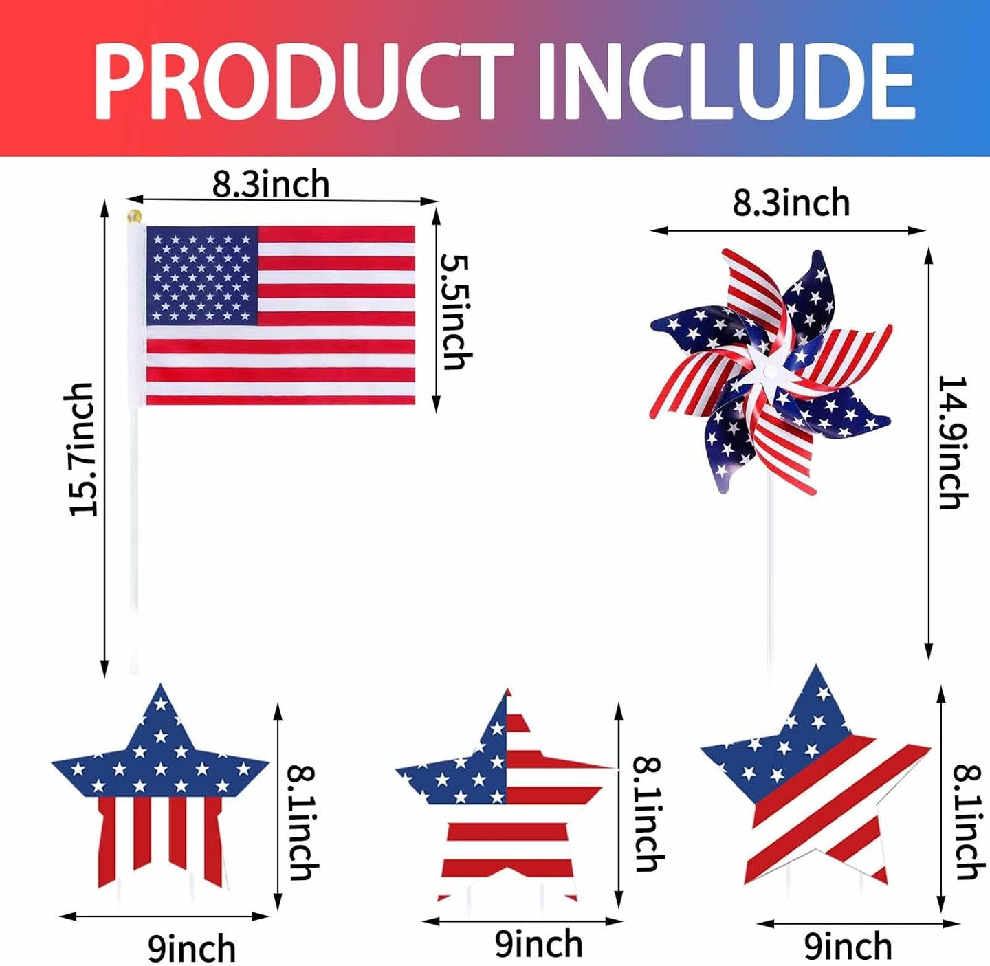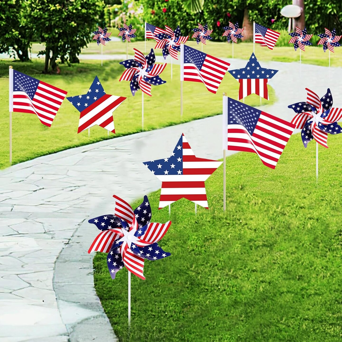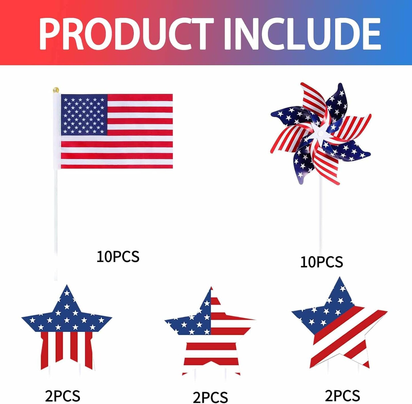 26 Pcs 4th of July Decorations Memorial Day Decorations,Small Flags,Patriotic Stars and Stripes Pinwheels,Red White and Blue Decor for Patriotic Independence Day Party Supplies