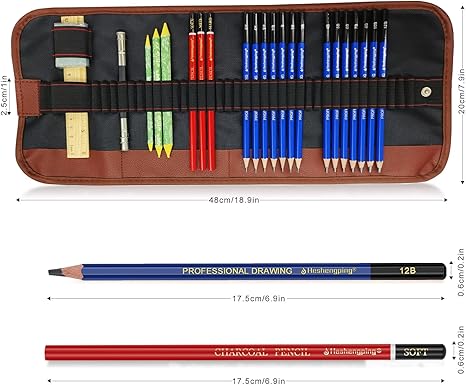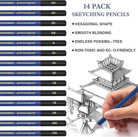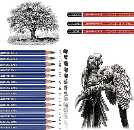 26 PCS Drawing Sketching Pencil Set – 14 Graphite Pencils (12B to 6H) Art Kit with Charcoal, Erasers, Sharpener & Extender – Professional Drawing Supplies for Artists & Beginners