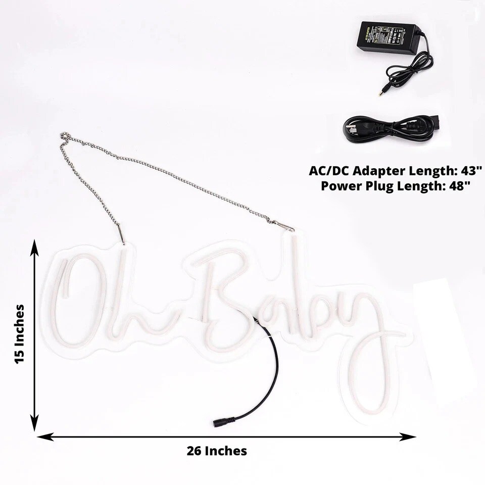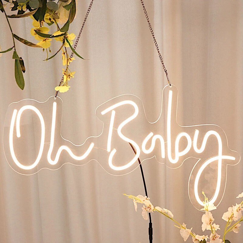 26" Warm White “Oh Baby” LED Neon Sign – Baby Shower & Party Wall Decor