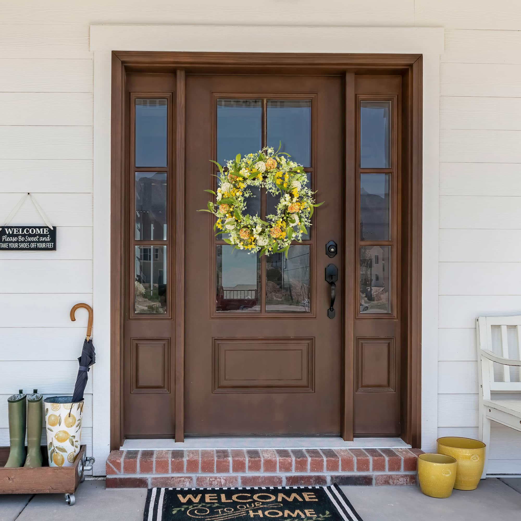 26" Yellow & Orange Berry & Thistle Floral Spring Wreath