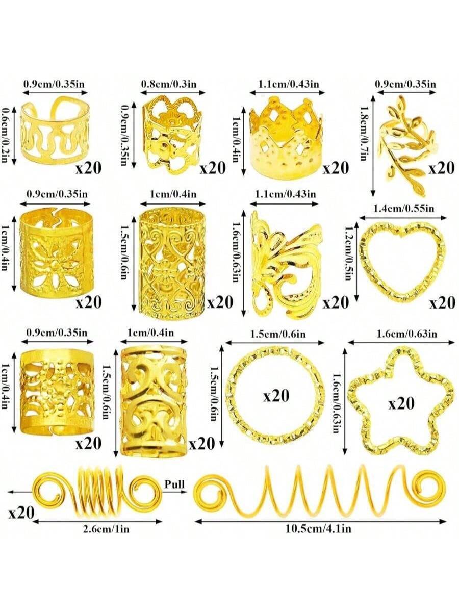 260 Pcs Hair Jewelry For Braids, Hair Beads Accessories For Dreadlock Metal Hair Clips Cuffs Rings