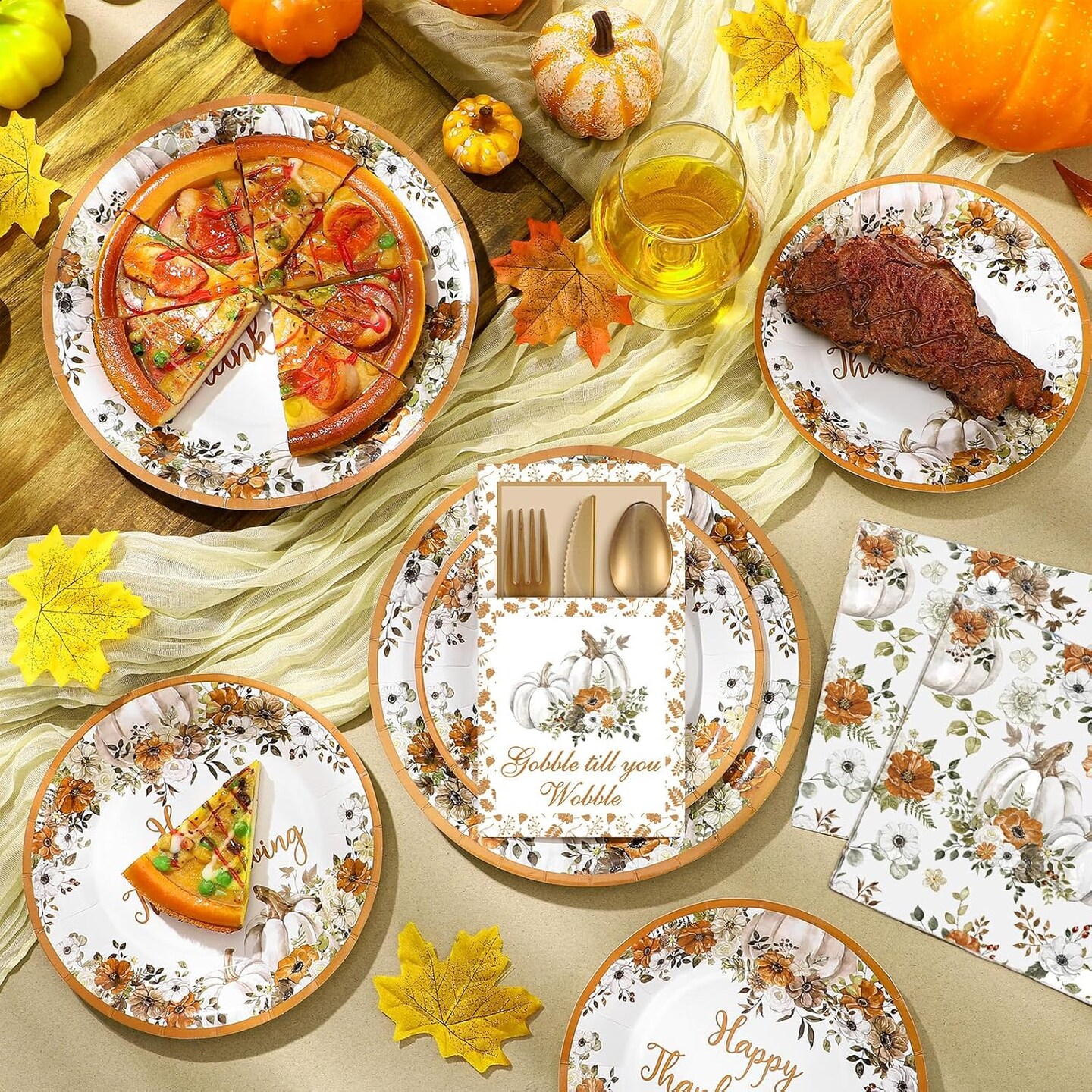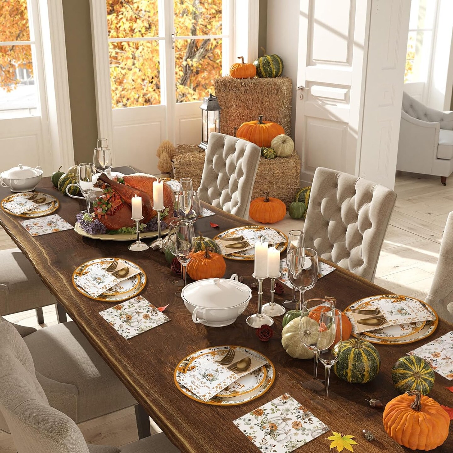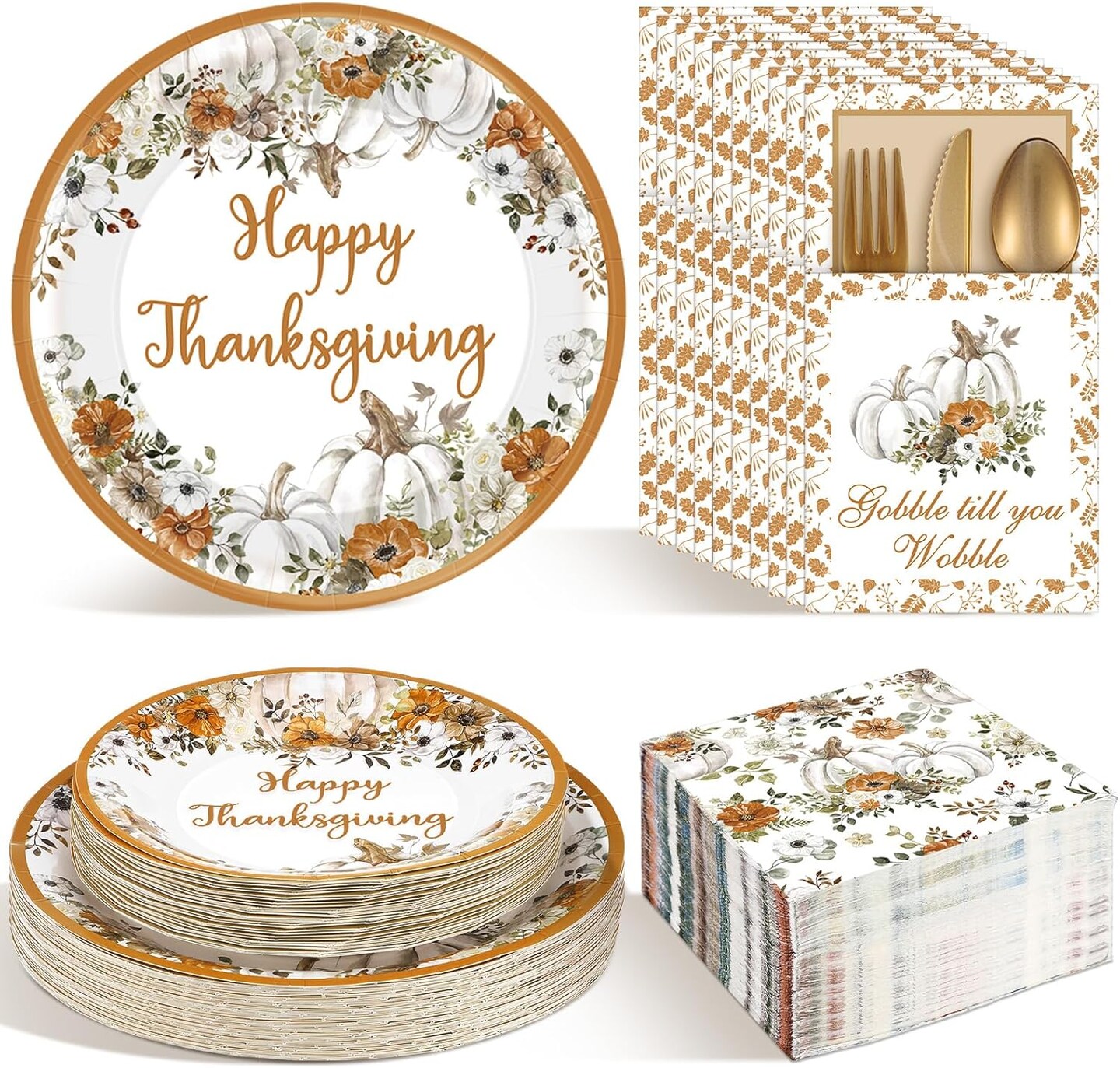 264 Pcs Thanksgiving Plates Napkins Disposable(Warm colors)9.8 x 9.8 x 0.2 inches