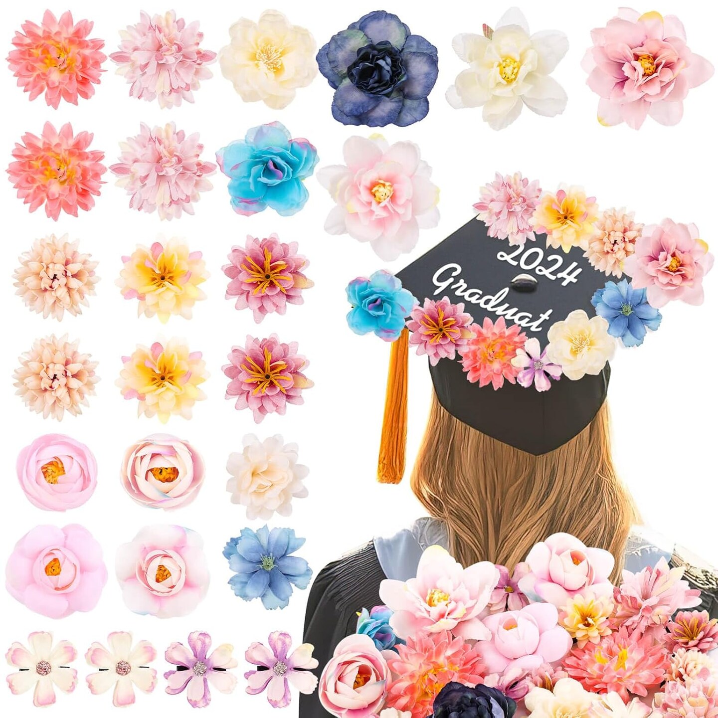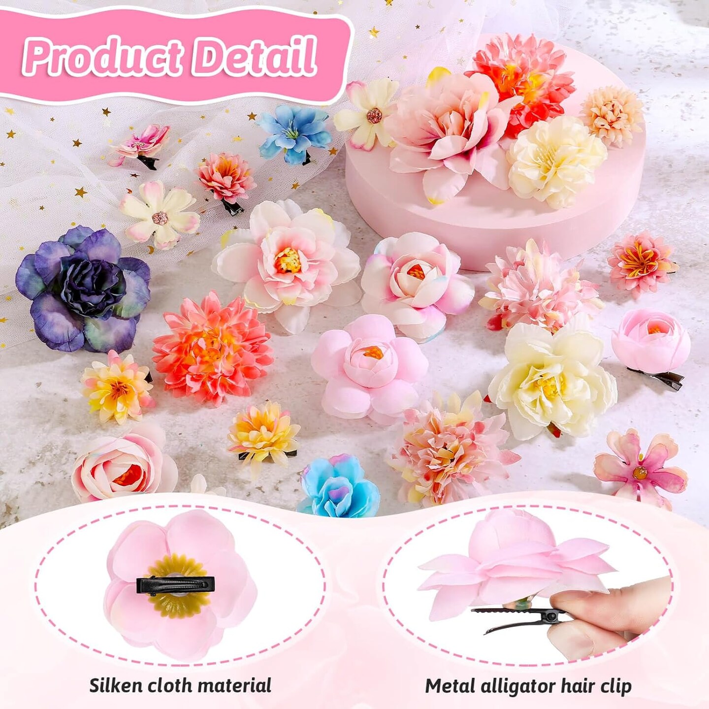 26Pcs Flower Hair Clips for Women (Pink)