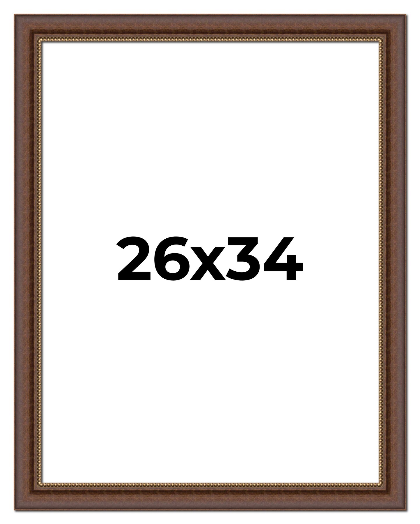 26x34 Traditional Brown Picture Frame - UV Acrylic, Foam Board Backing, Hanging Hardware