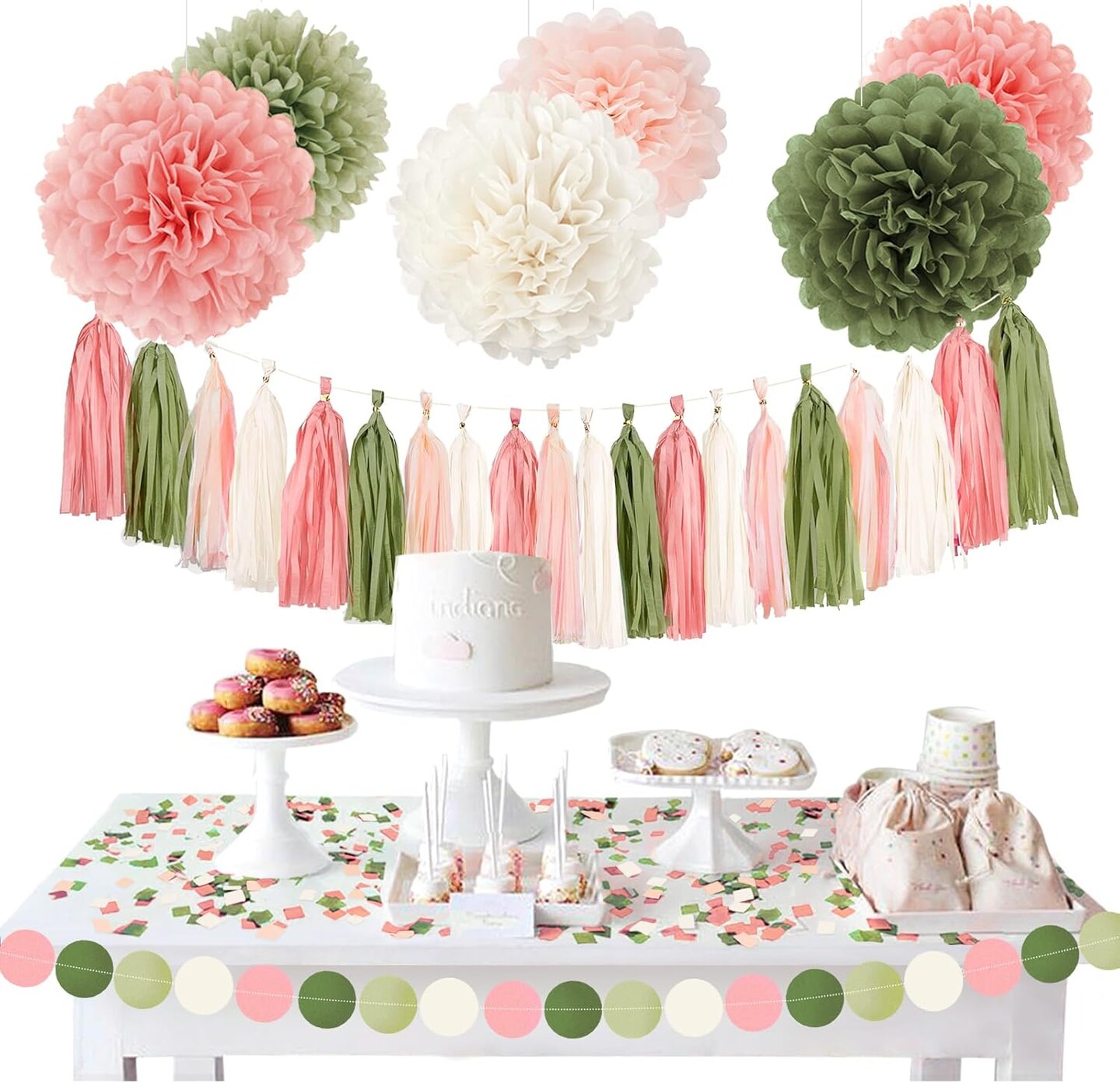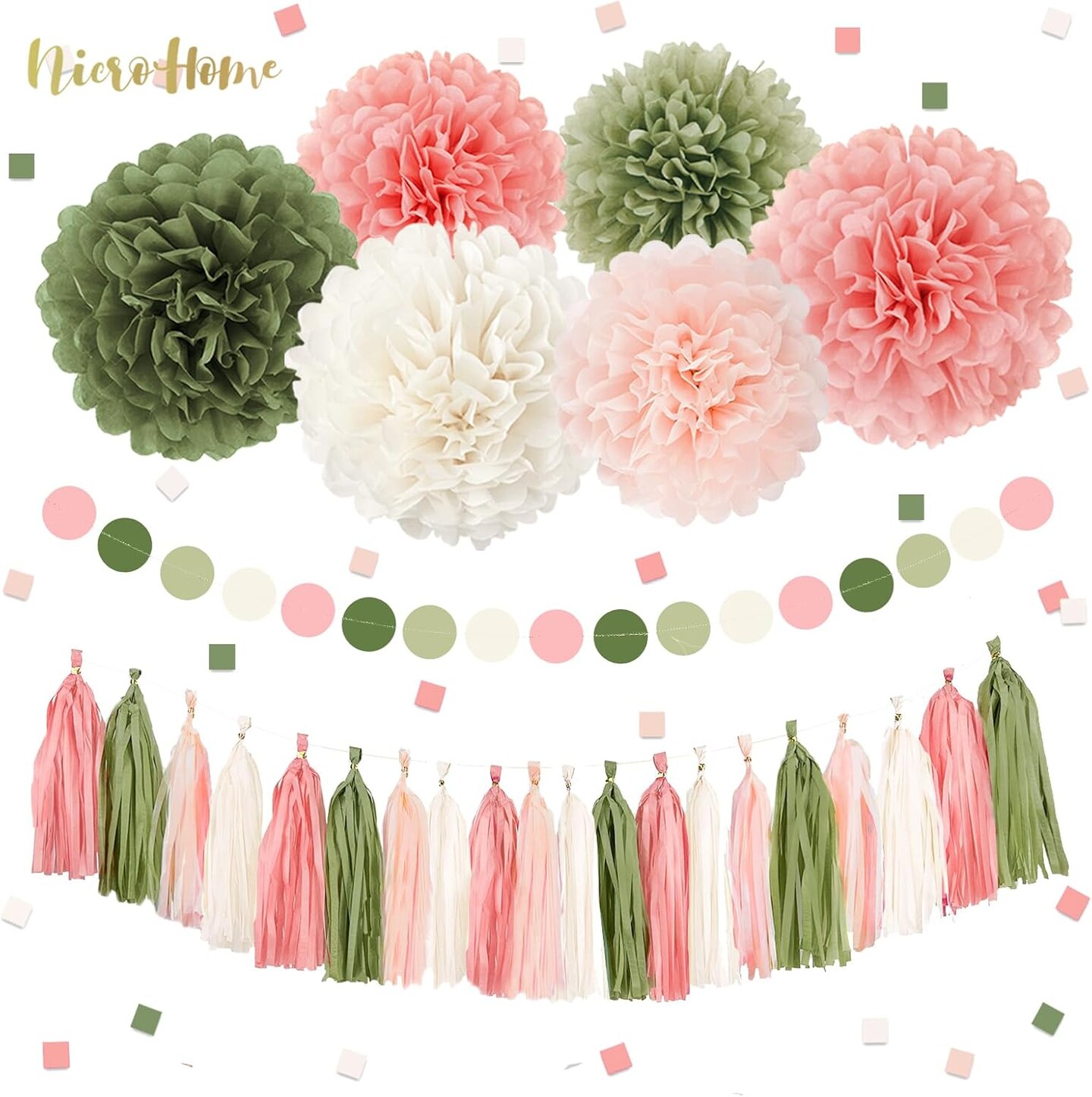 27 PCS Pink Sage Green Tissue Paper Pom Poms(Pink Sage Green)