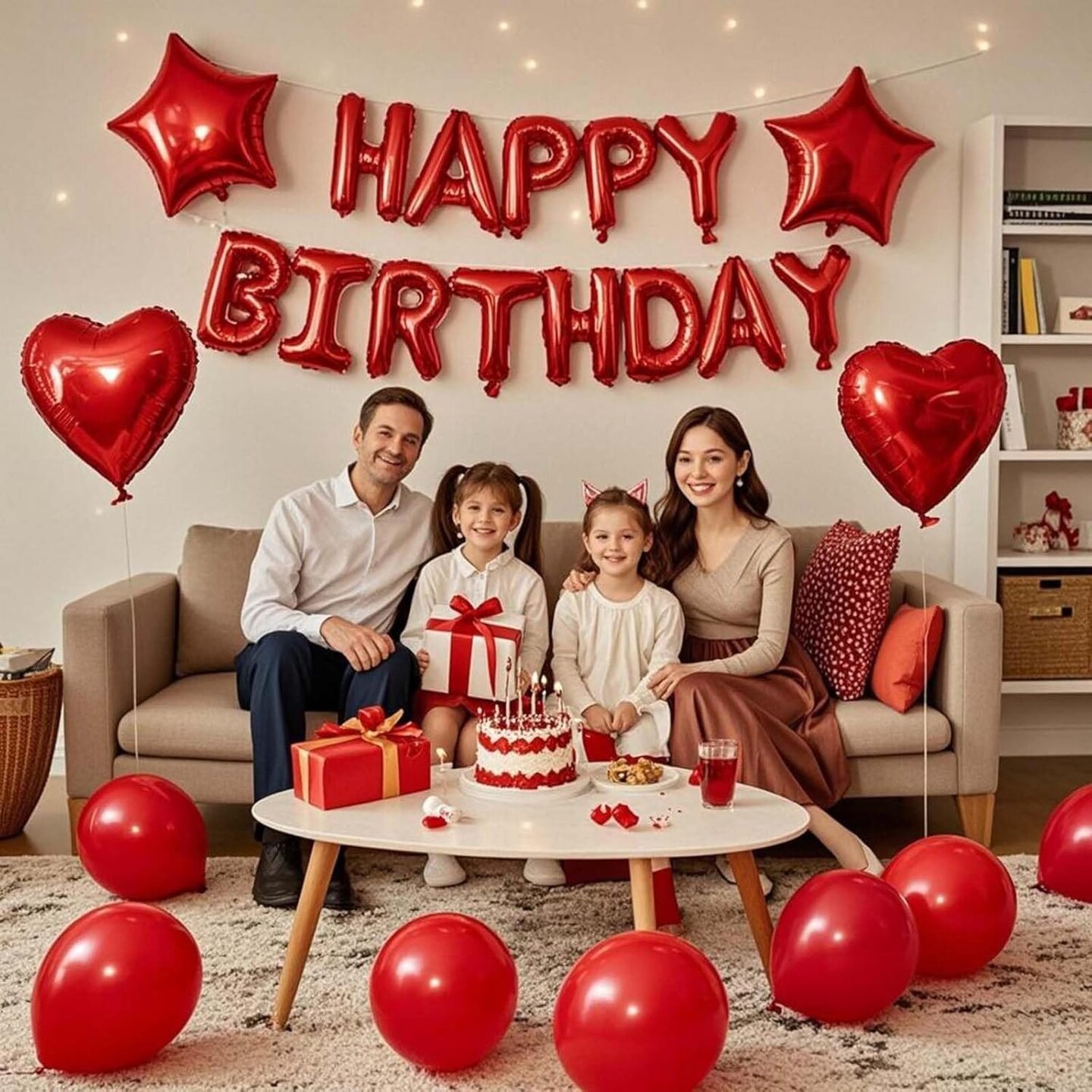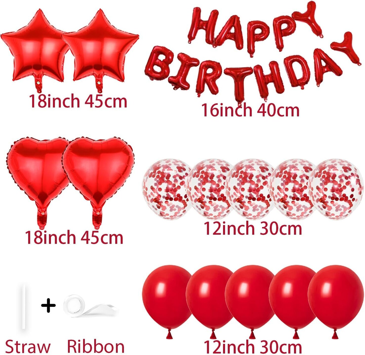 27 Pcs Red Birthday Decorations, 3D Foil Red Happy Birthday Balloon Banner