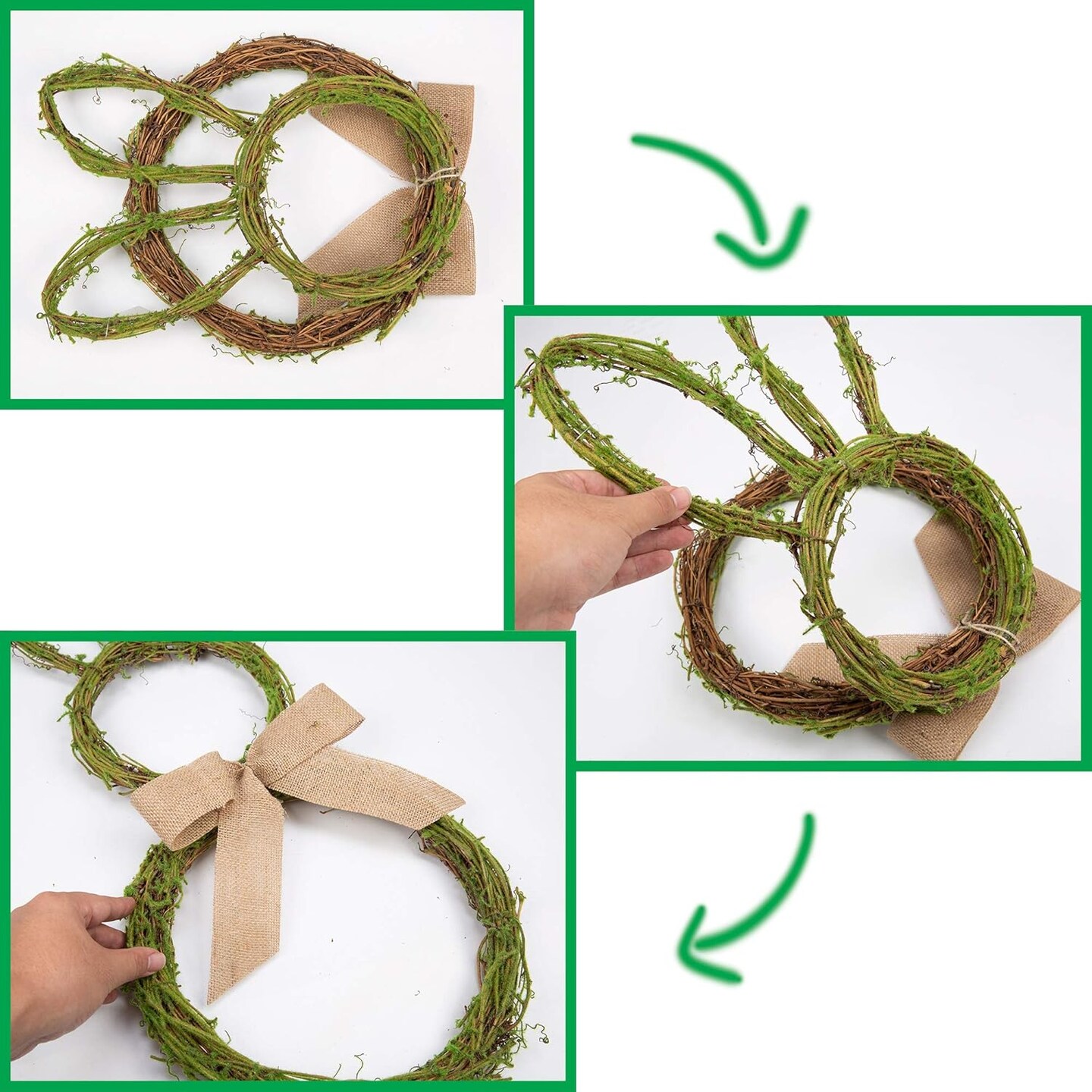 27-Inch Easter Bunny Wreath for Front Door – Artificial Spring Wreath with Moss, Burlap Bow & Rustic Farmhouse Decor