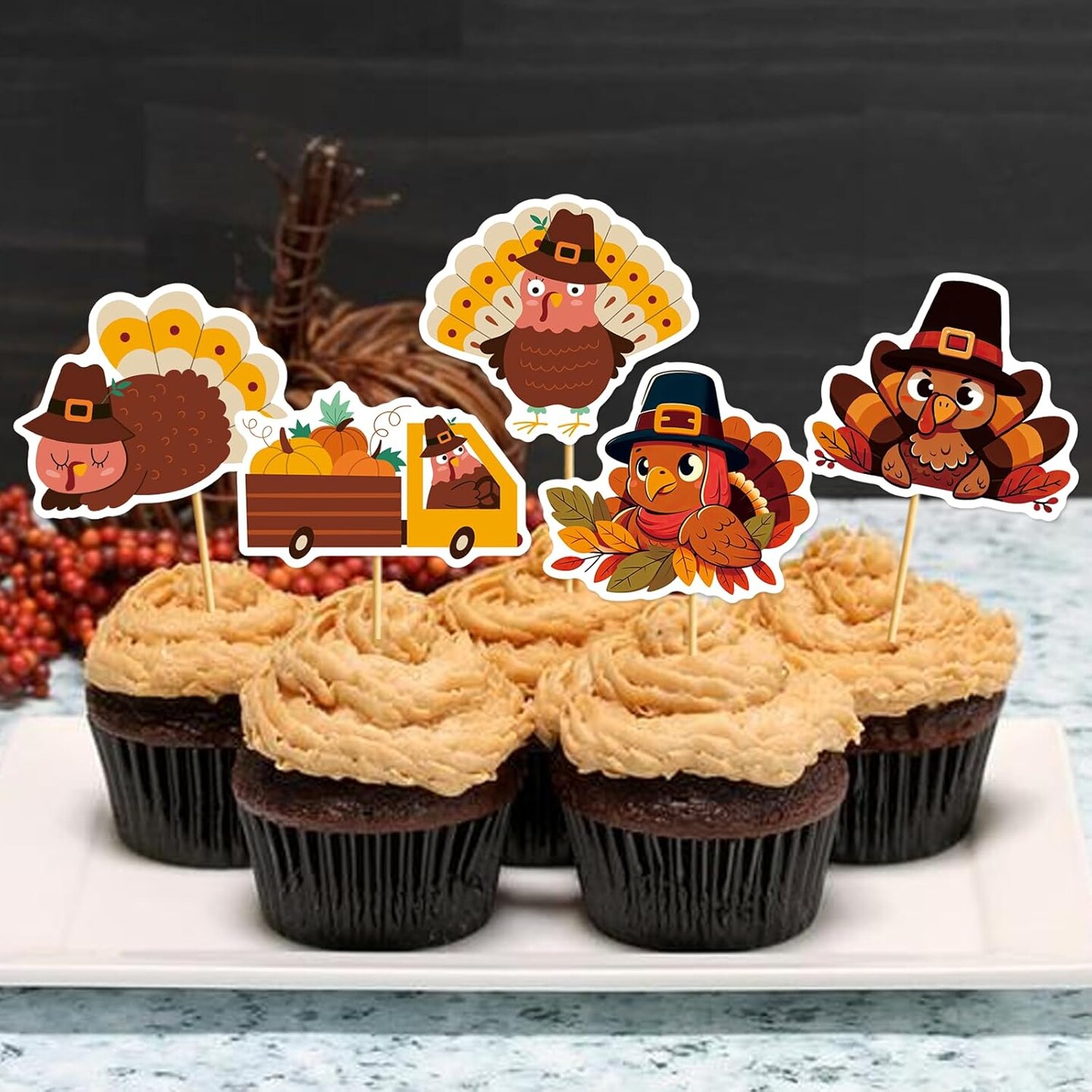 27Pcs Thanksgiving Cupcake Toppers