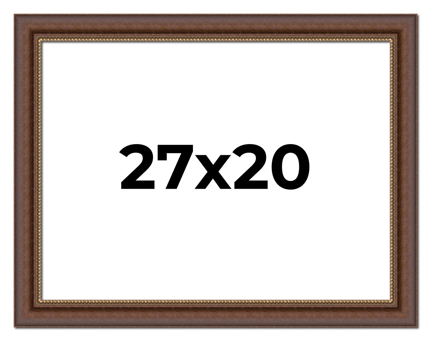 27x20 Traditional Brown Picture Frame - UV Acrylic, Foam Board Backing, Hanging Hardware