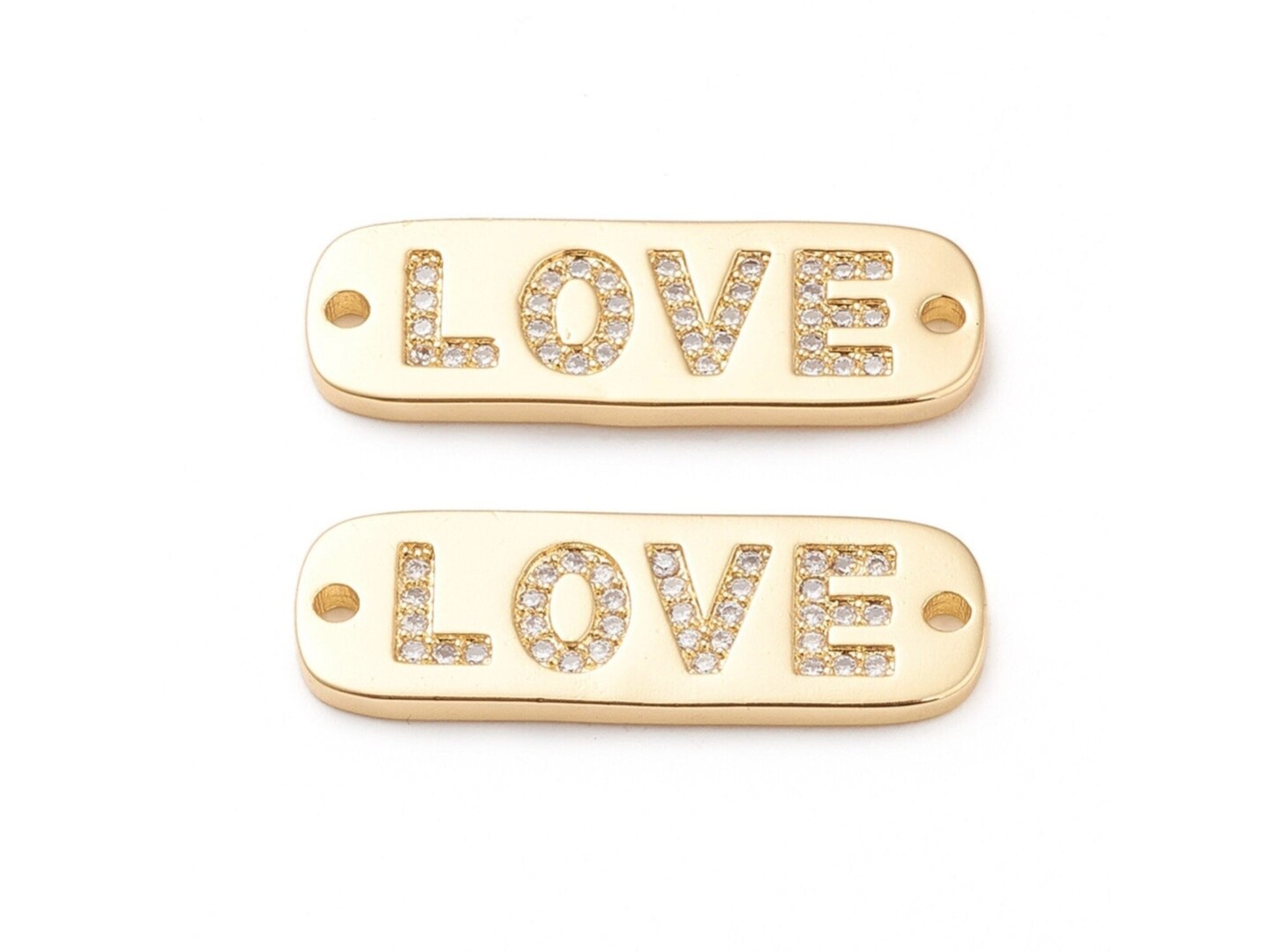 27x9mm 18k Gold Plated Micro Pave Cubic Zirconia Oval "Love" Link