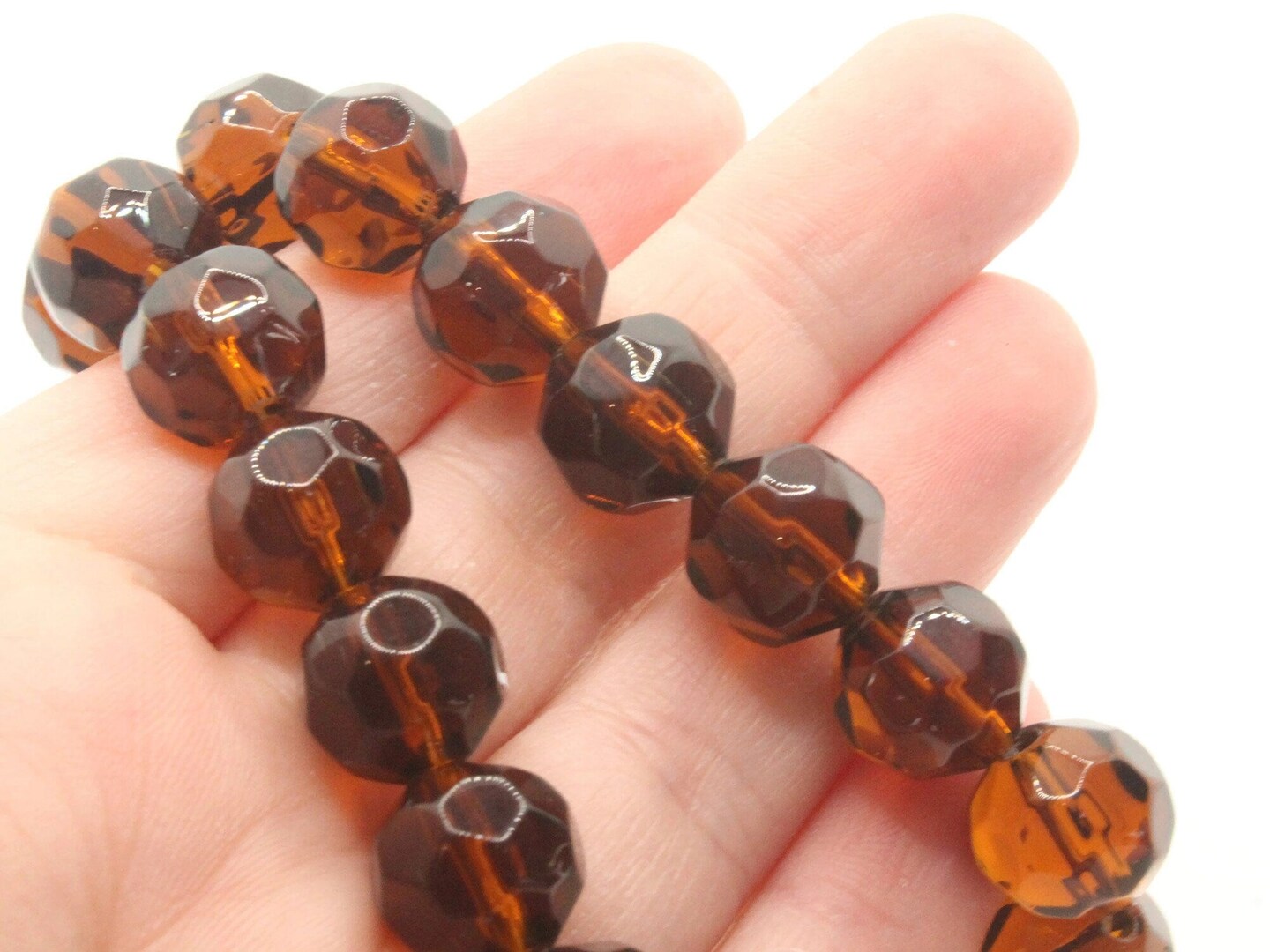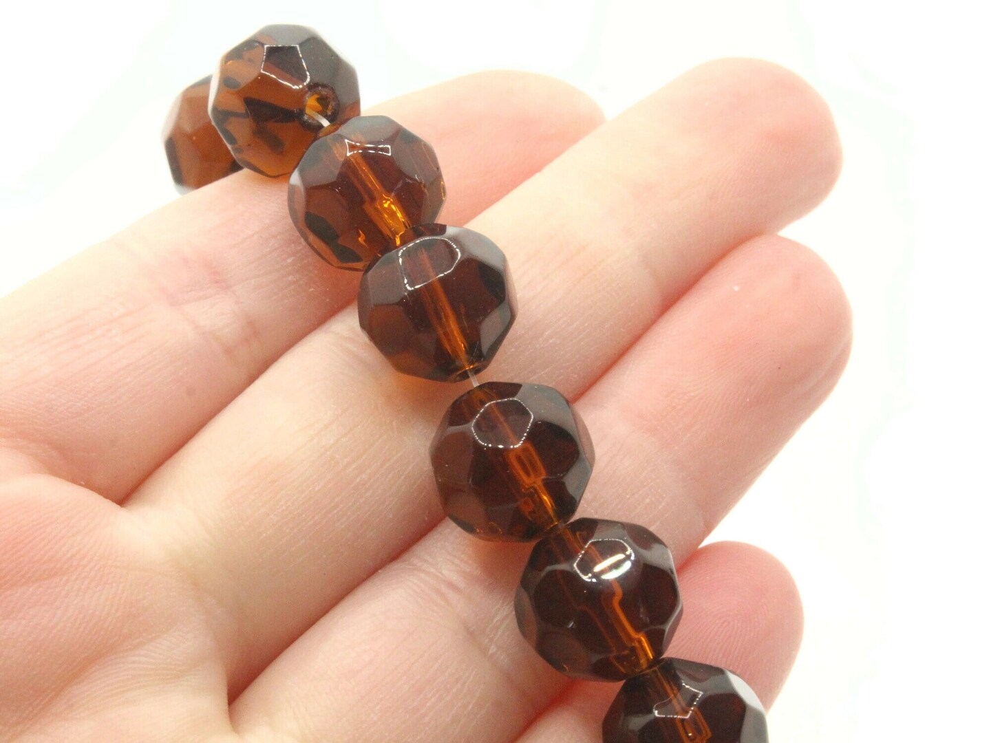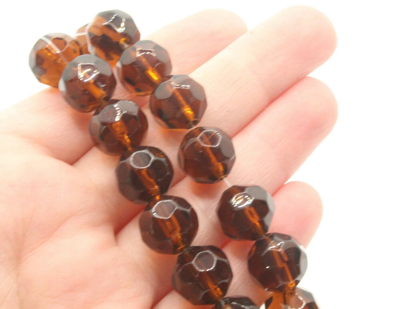 28 12mm Brown Faceted Round Glass Beads