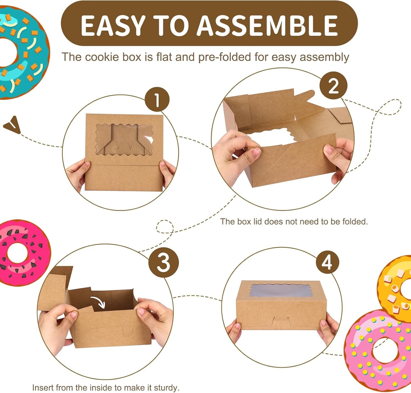 28 Brown Cookie & Bakery Boxes with Window, 9×6×3 in