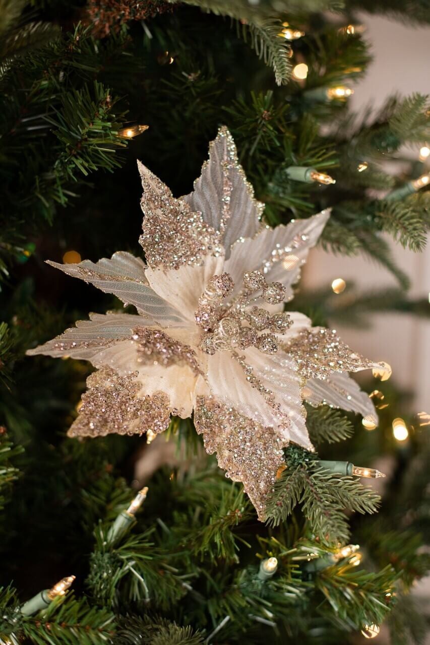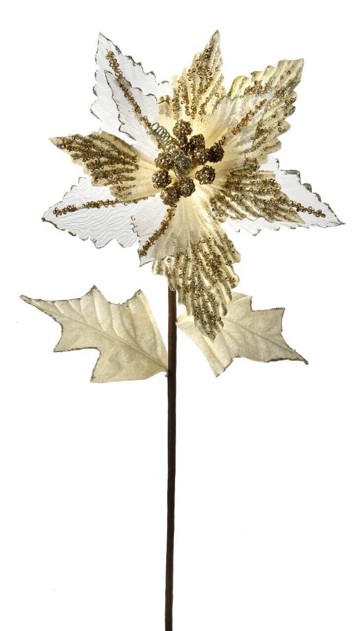 28” Champagne Glitter Velvet Sheer Poinsettia Stem