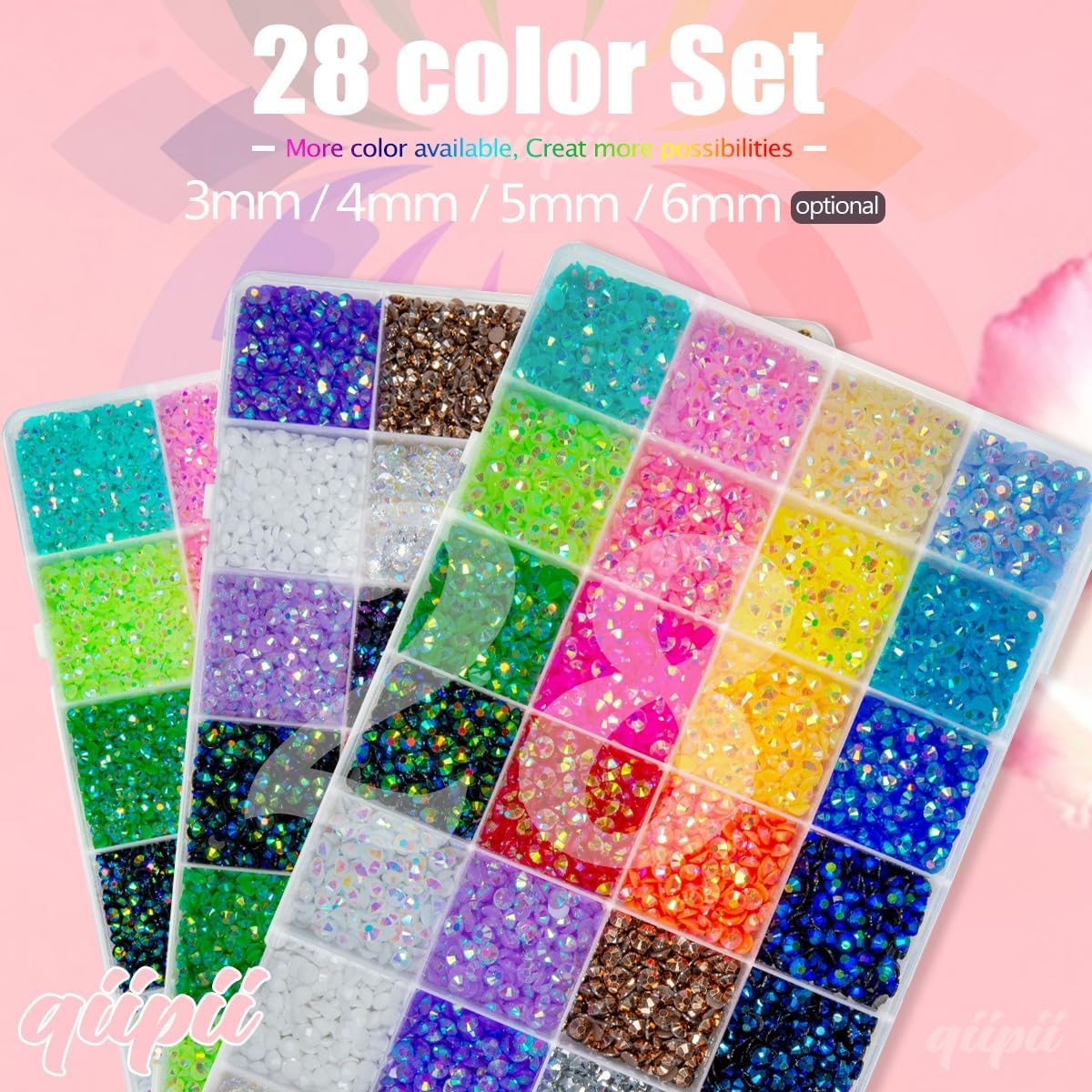 28 Color 3mm Jelly Resin Rhinestones w B7000 Glue for Bedazzling Crafting Flatback Stones Colorful AB Gems Diamonds Bedaazler Kit Charms for Nails Eyes Face Makeup Tumblers Bottles DIY Crafts