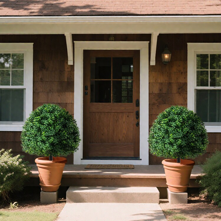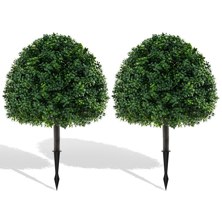 28" Faux Boxwood Topiary Ball Trees with Ground Spikes for Indoor Planters and Outdoor Garden Display