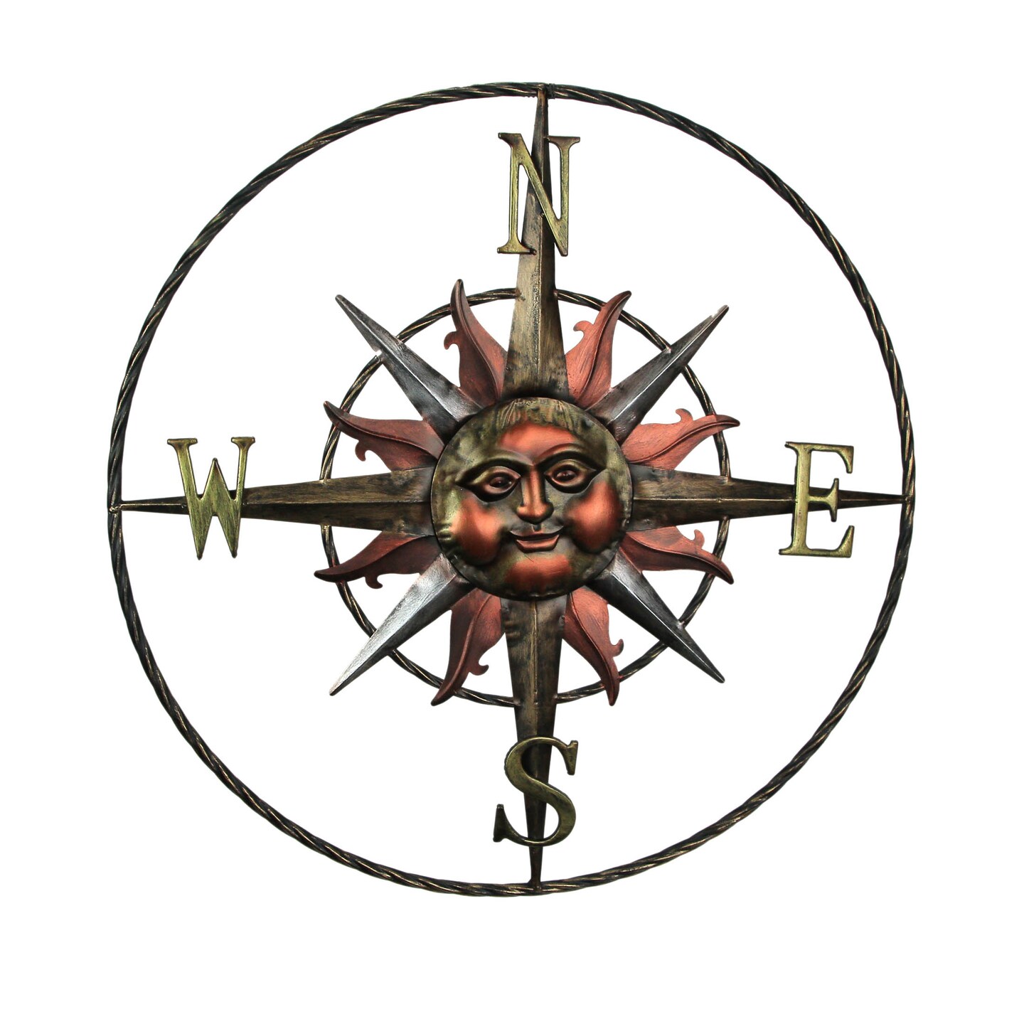 28 Inch Metal Sun Face Compass Rose Indoor Outdoor Home Decor Wall Art Plaque