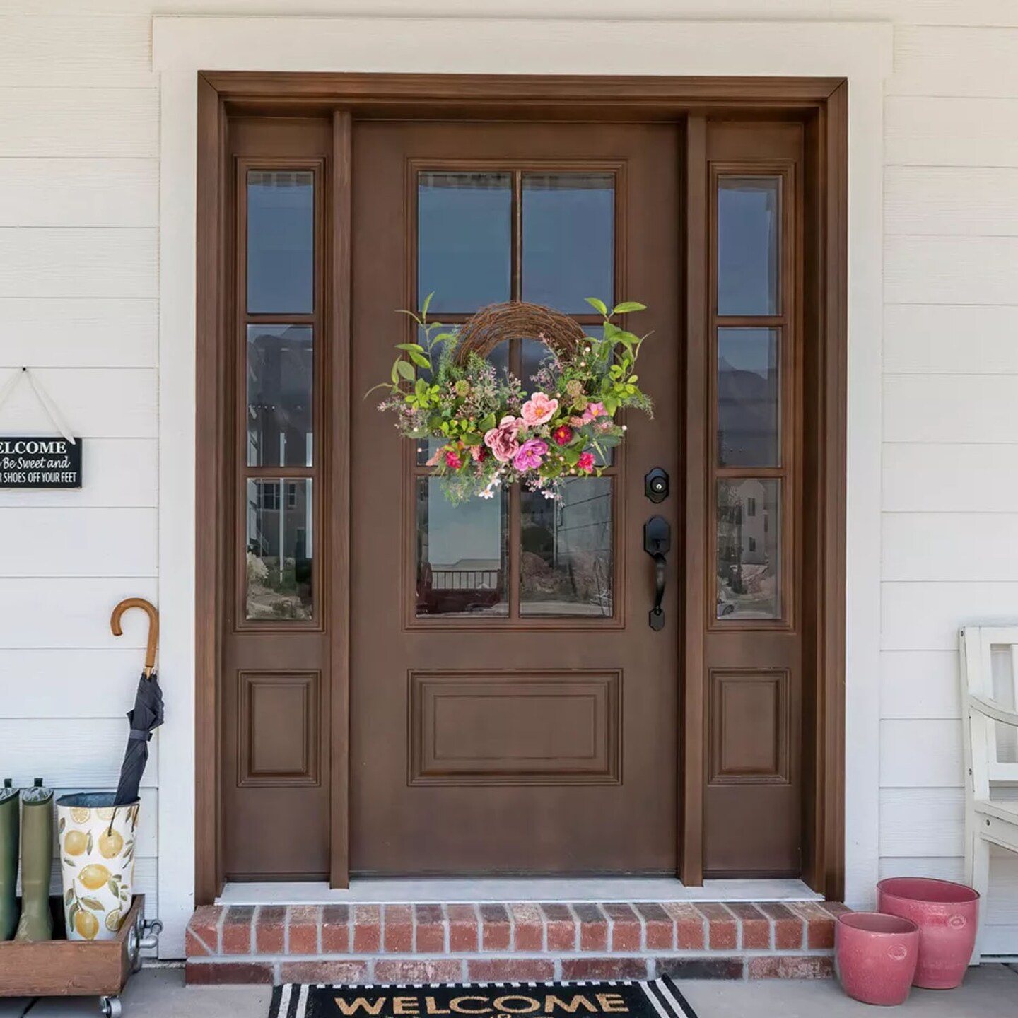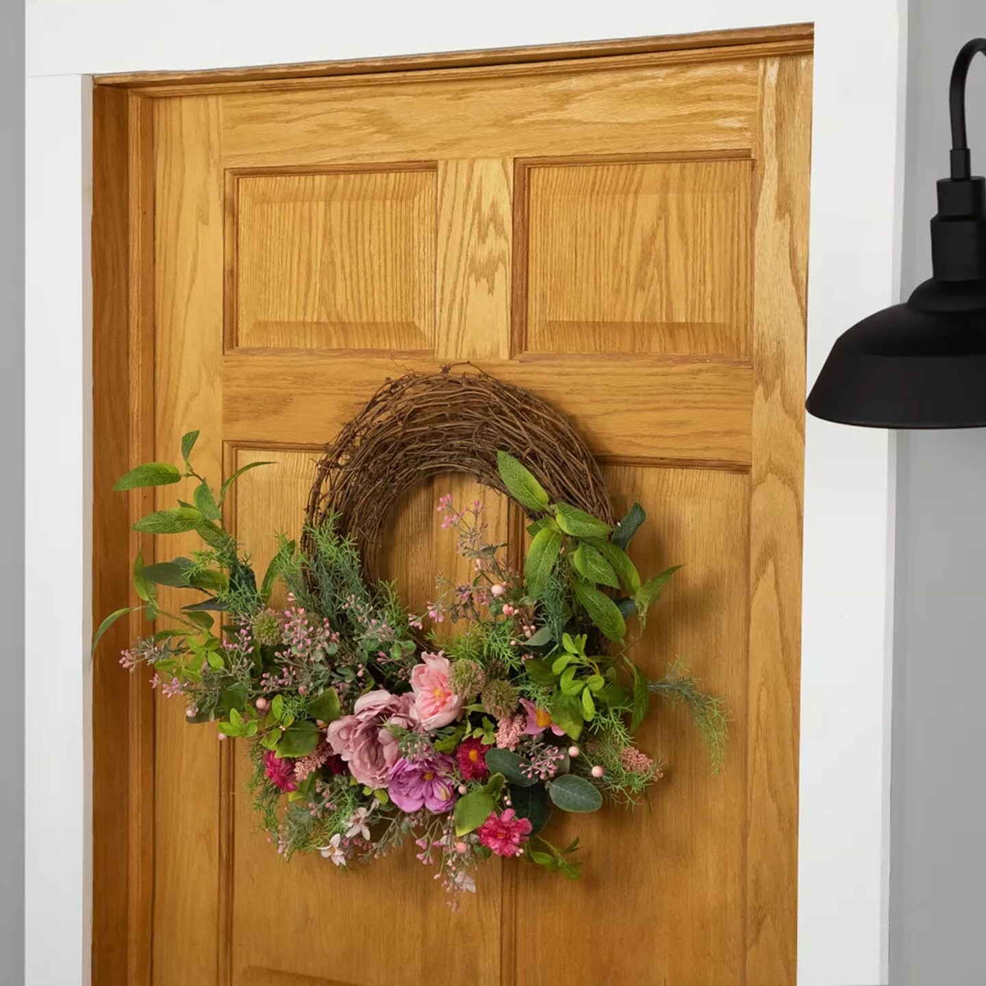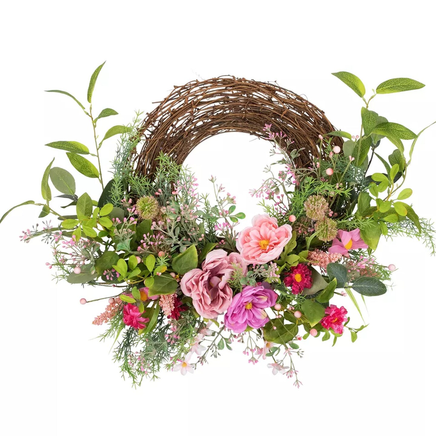 28 Inch Pink Peony Mixed Floral Half Spring Wreath