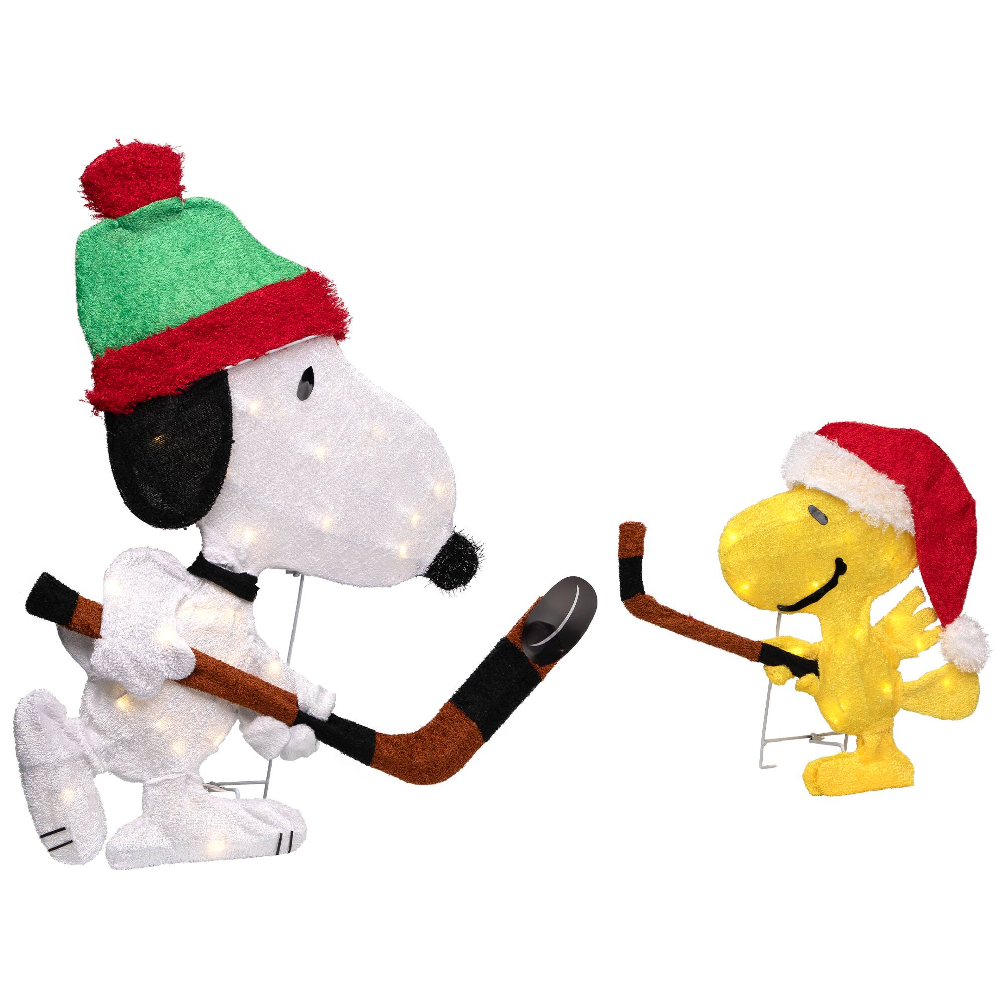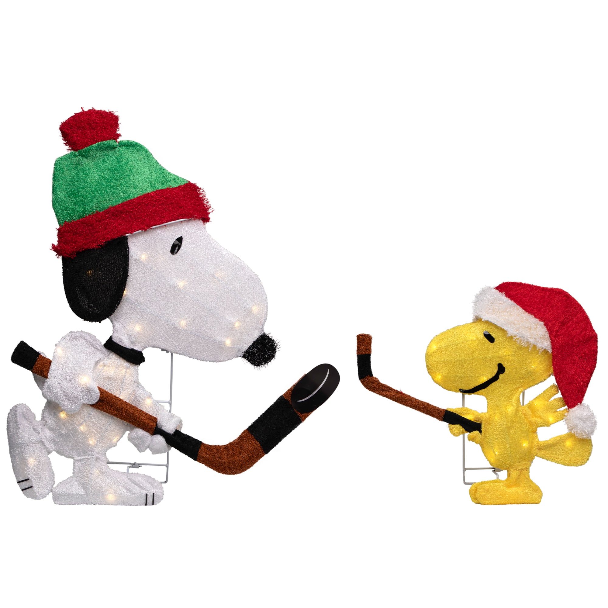 28" Lighted Snoopy & Woodstock Play Hockey Outdoor Christmas Yard Decoration