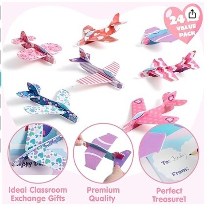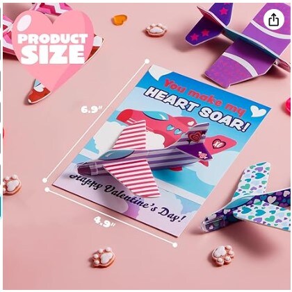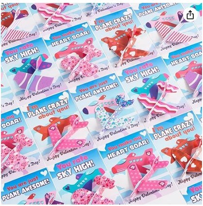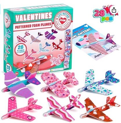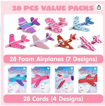 28 Valentines Day Foam Airplanes Greeting Cards with Valentine's Punchline for Kids School Classroom Exchange Prizes Gift Supplies.