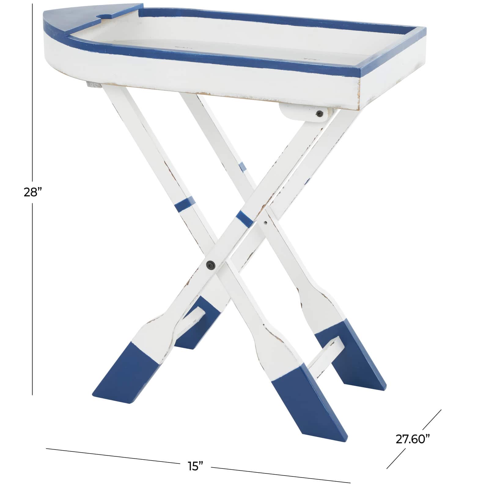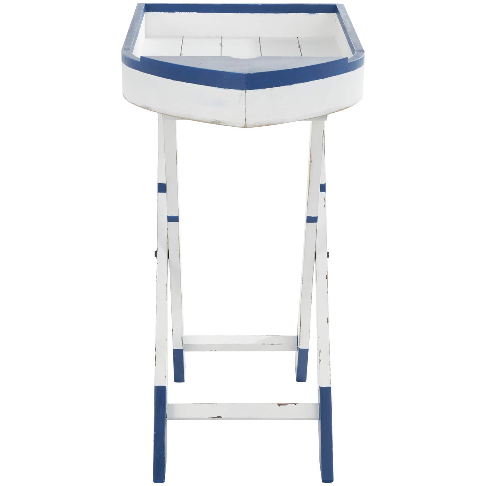 28" White & Blue Foldable Tray Top Accent Table
