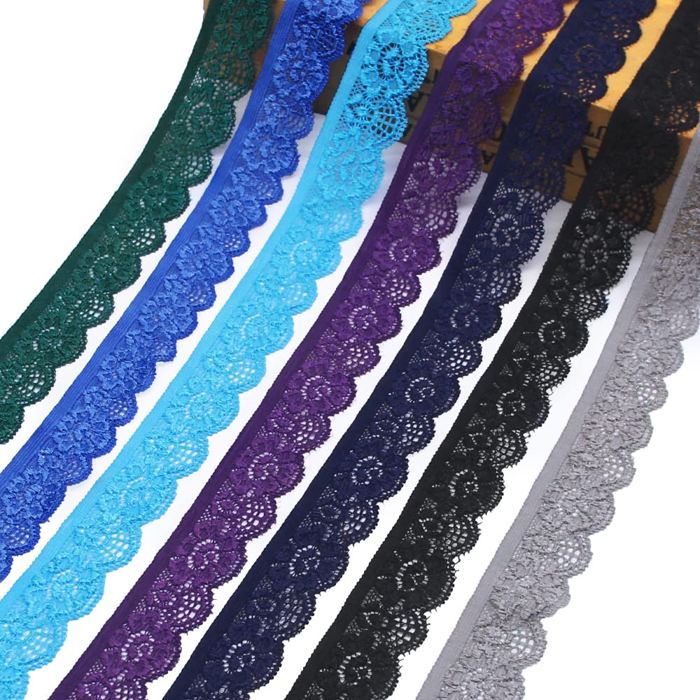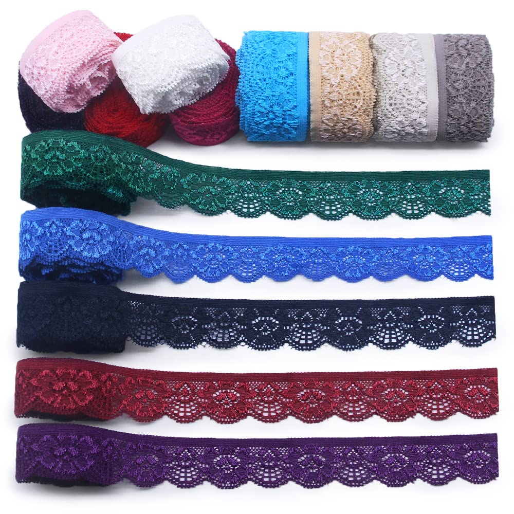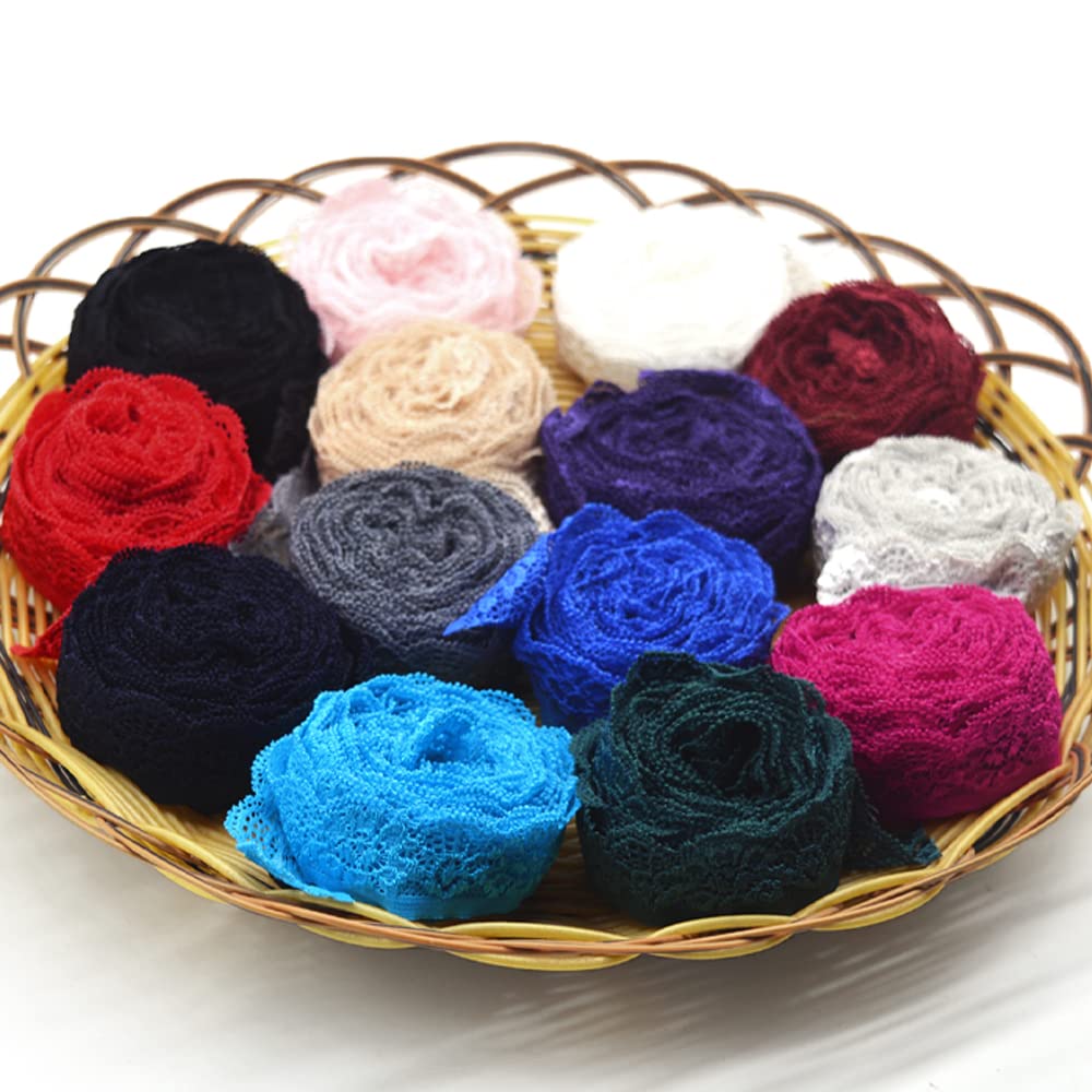 28 Yards 1" Wide Lace Elastic Trim 14 Colors Lace Ribbon Flower Edge Trimming for Sewing Craft Wedding Party Decor Clothes(NO064 Mixed Color)