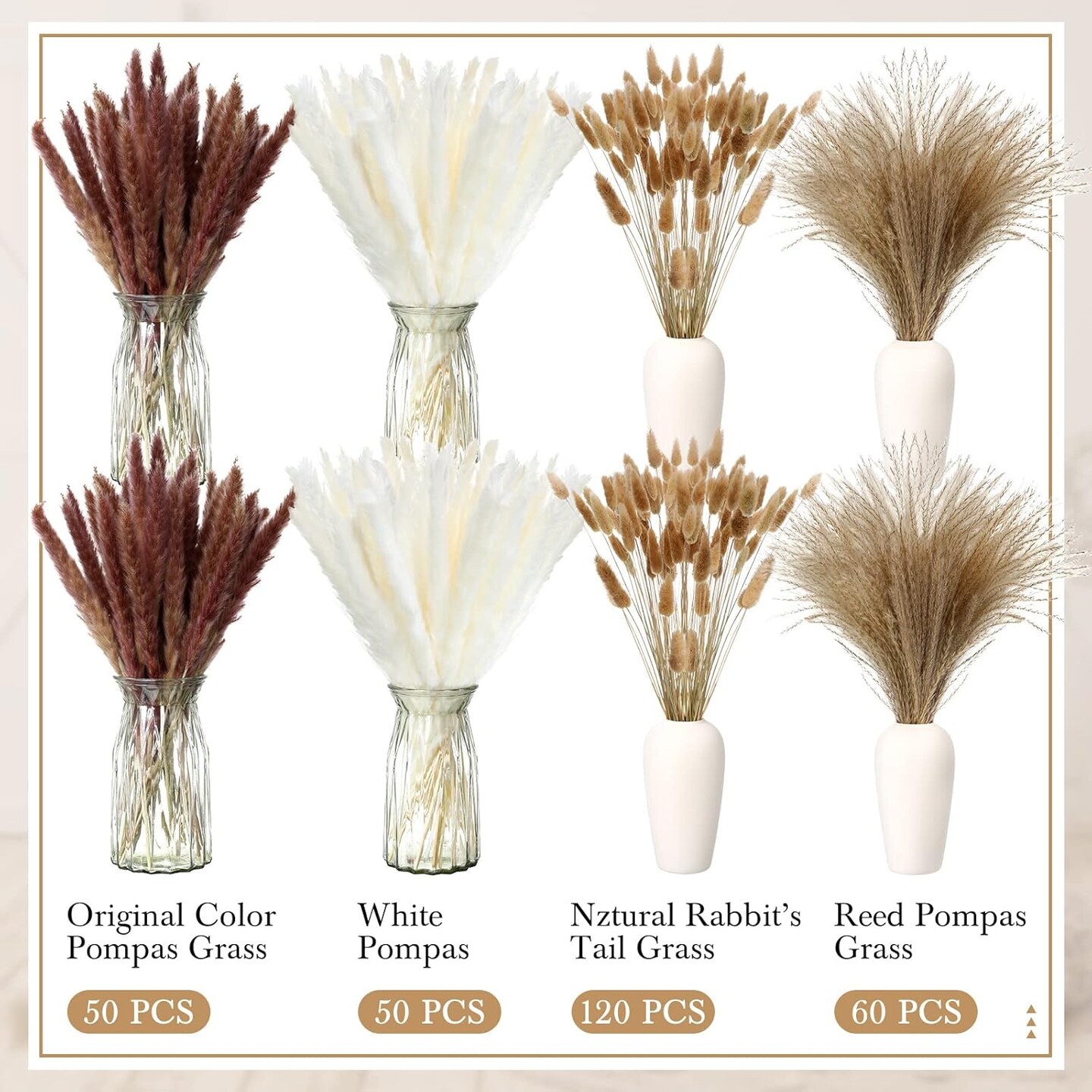 280 Pcs Natural Dried Pampas Grass Decor 17 Inch(Pampas Grass, Reed Grass)