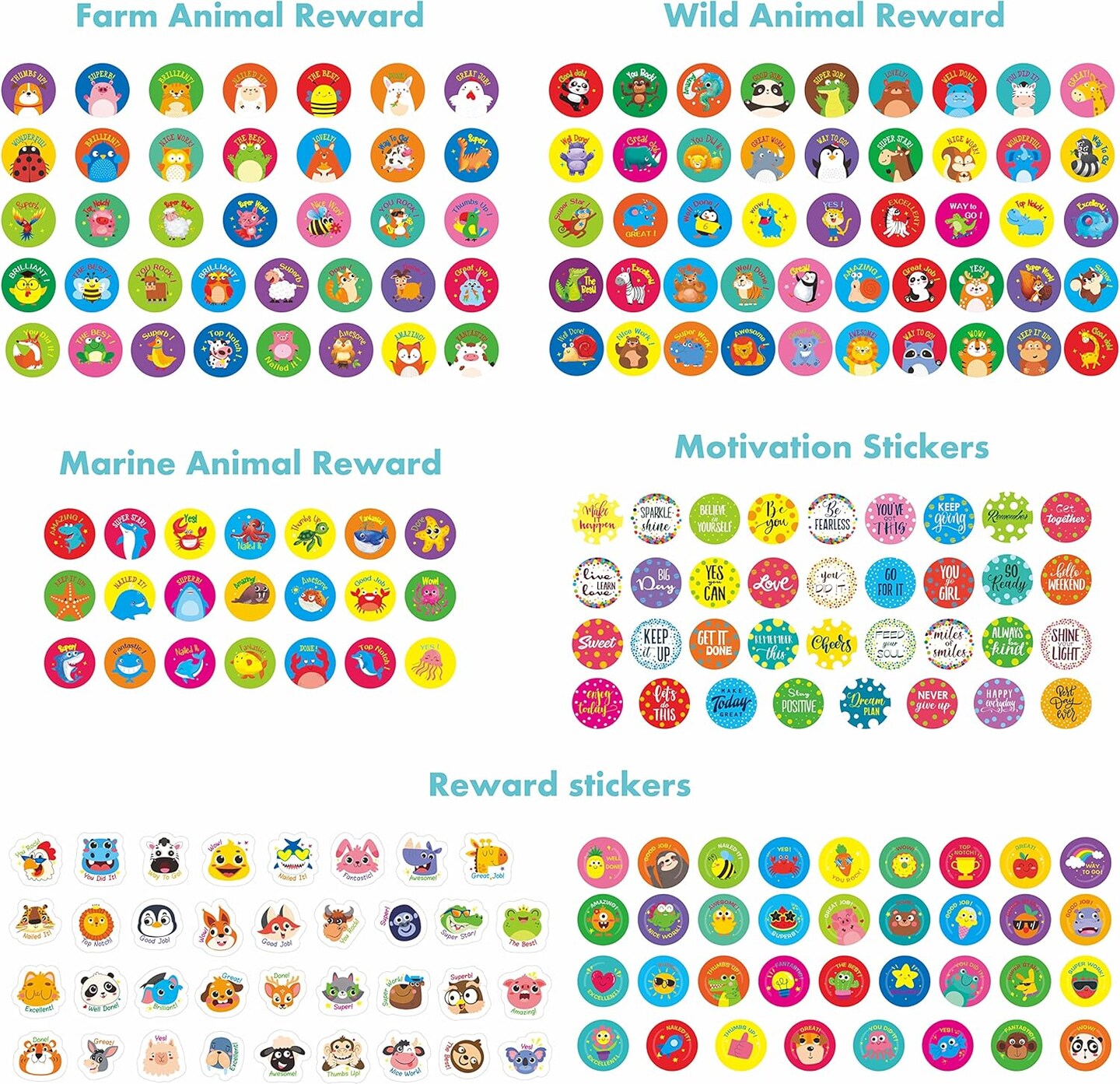 2872 Large Incentive Stickers, 64 Sheets Round Encouragement Stickers