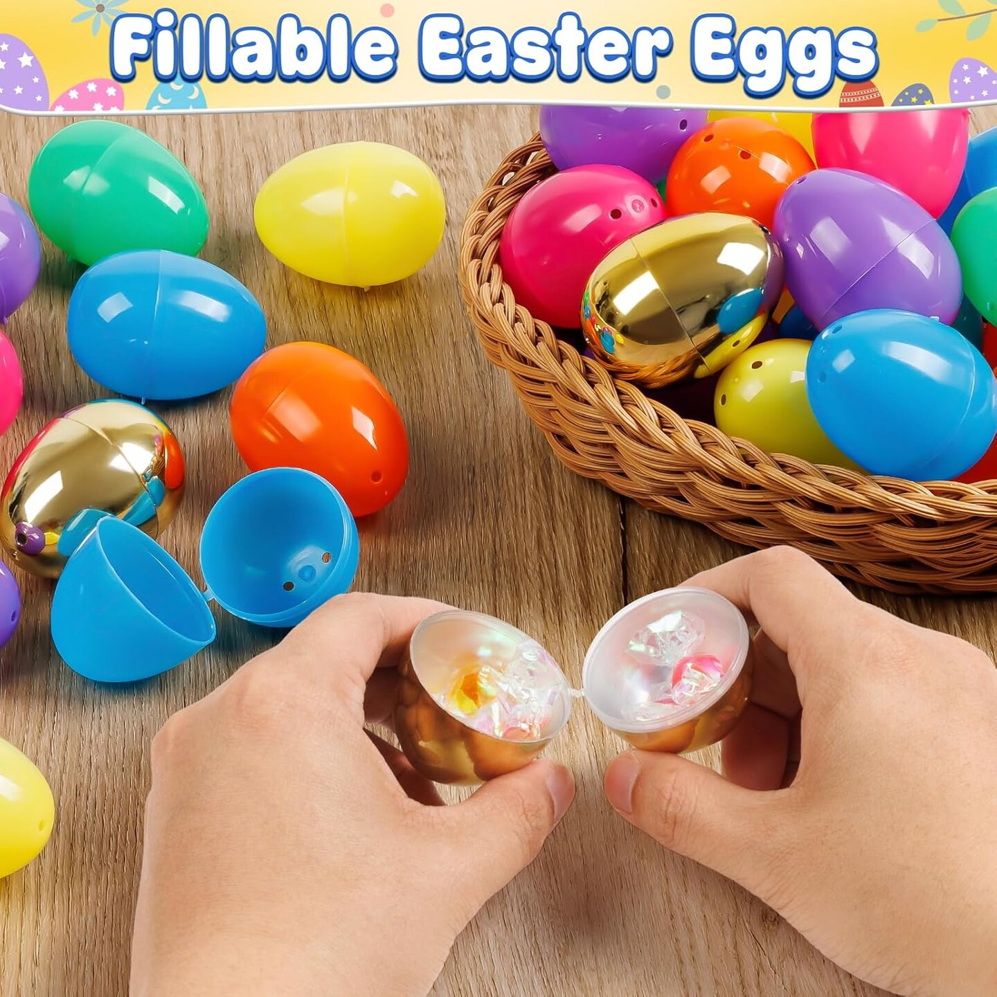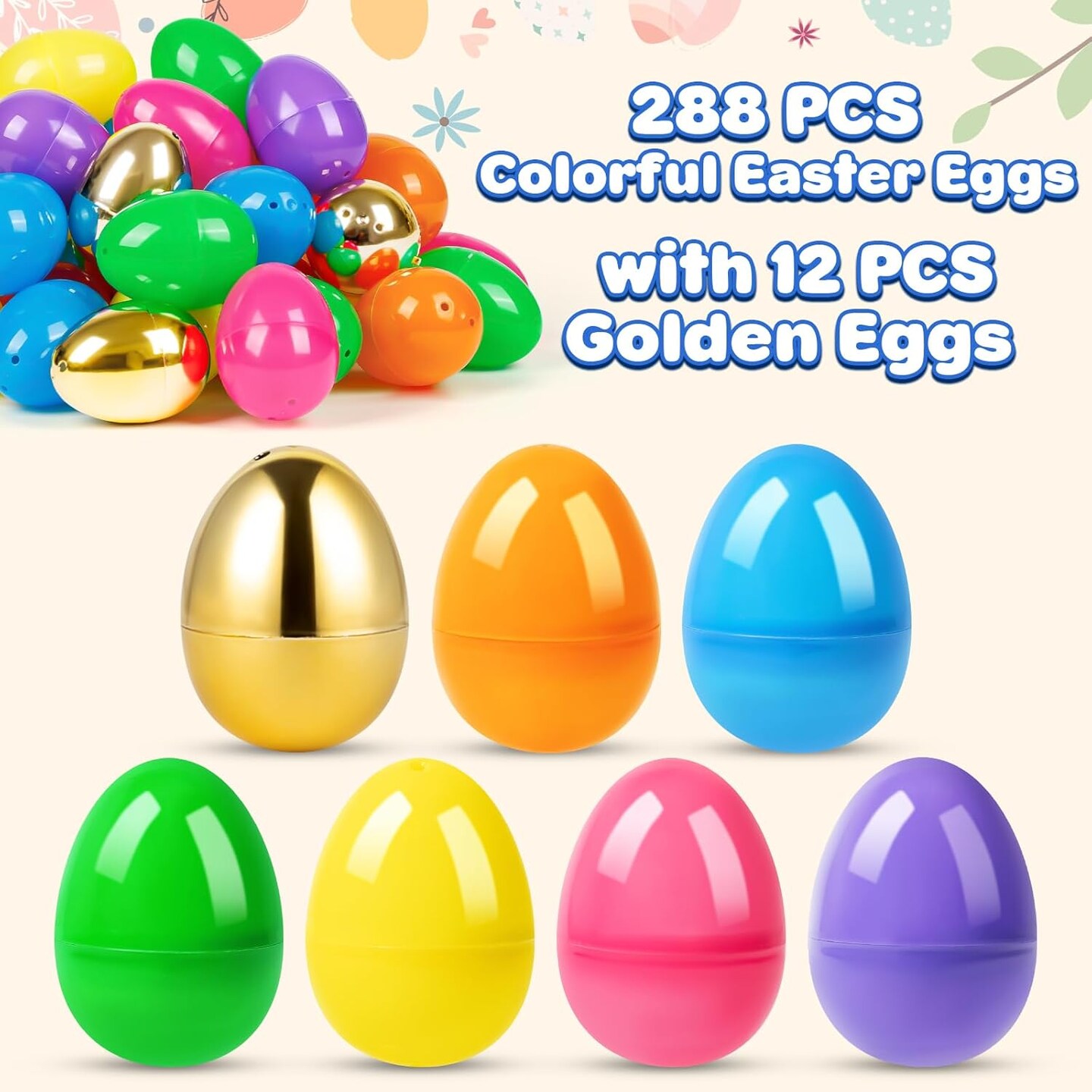 288 Plastic Easter Eggs with 12 Golden Eggs, 2.4'' Bulk Empty Easter Eggs, Hinged Fillable Eggs for Easter Egg Hunt, Surprise Eggs, Basket Stuffers Fillers