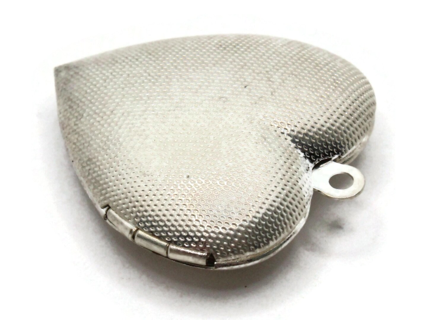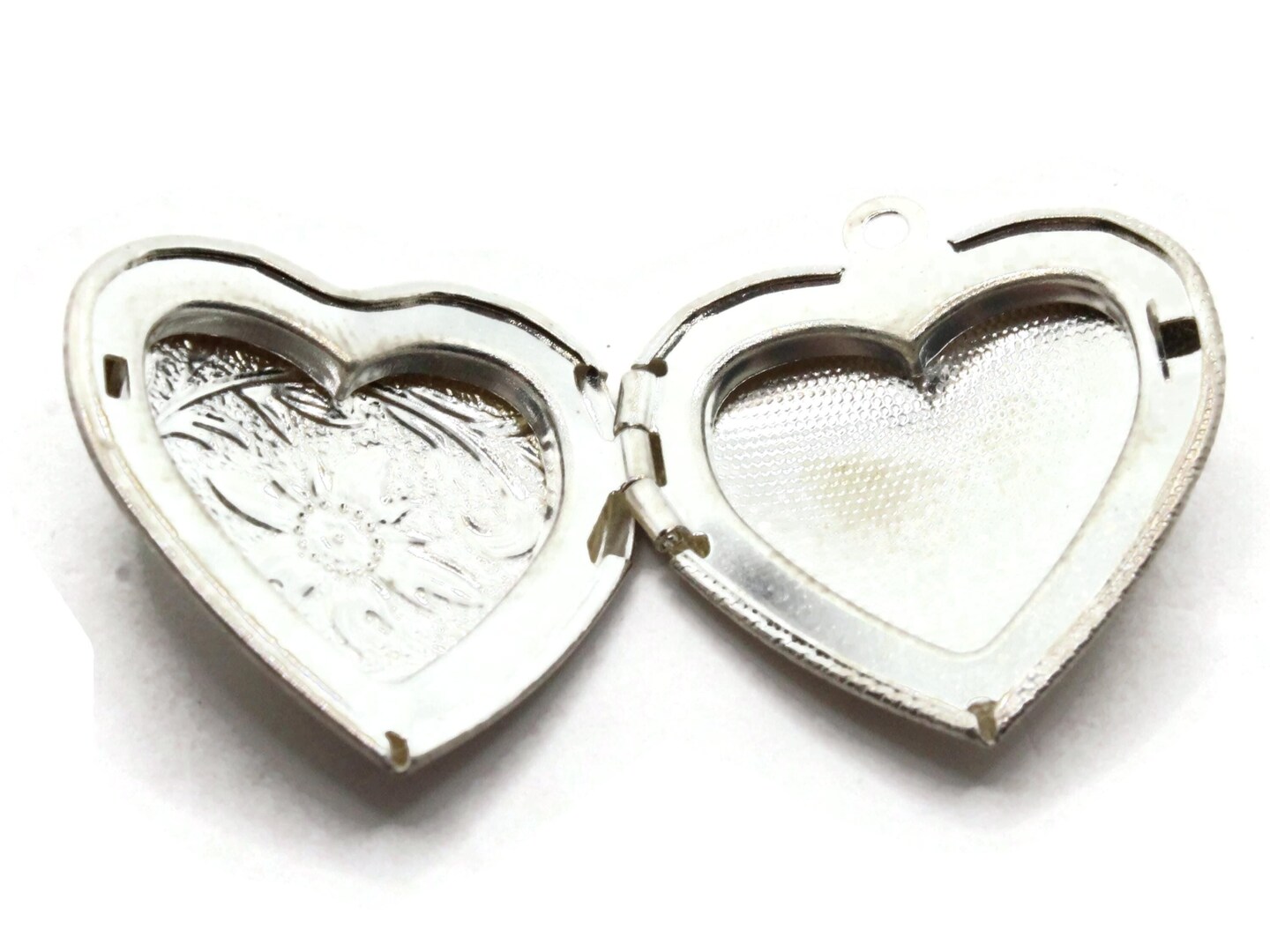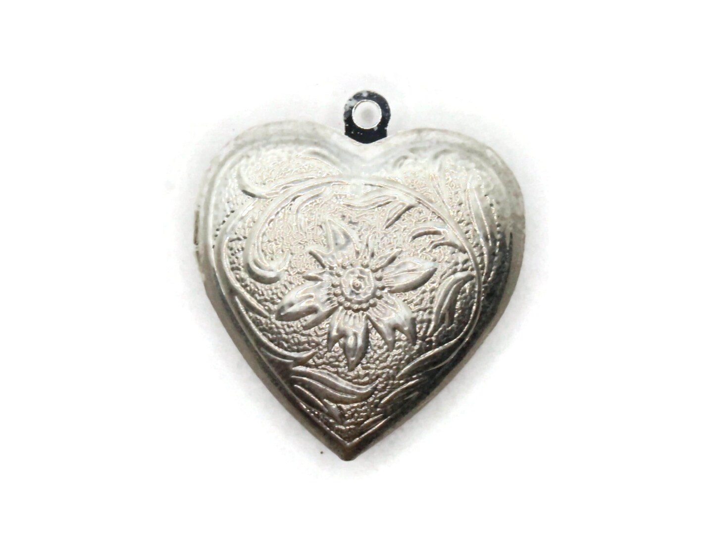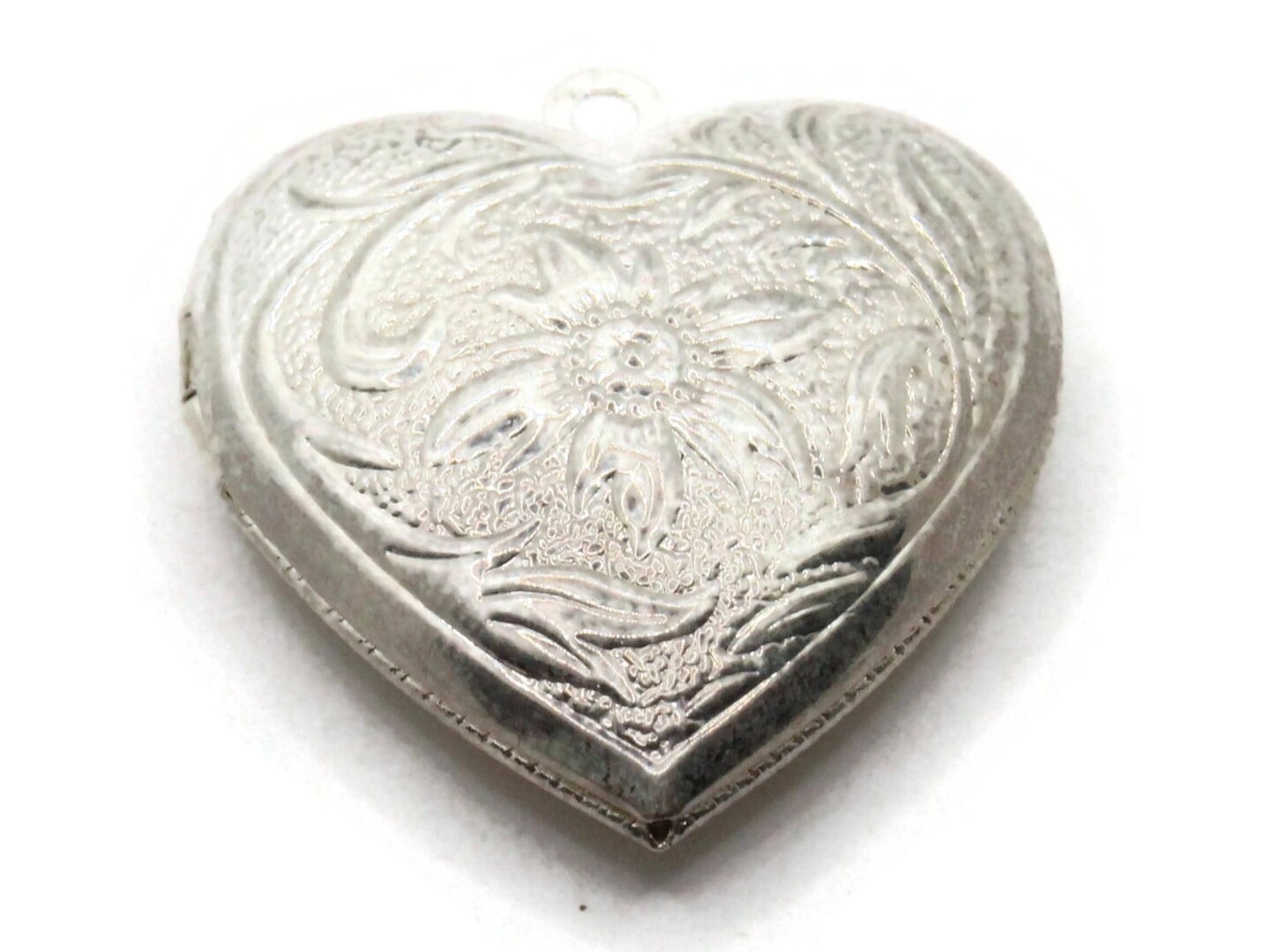 28mm Heart Locket with Flowers Antique Silver Tone Brass Locket Charm