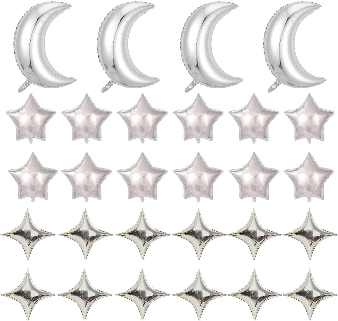 28PCS Silver Moon & Star Foil Balloons – Party Decorations for Baby Shower, Wedding, Birthday