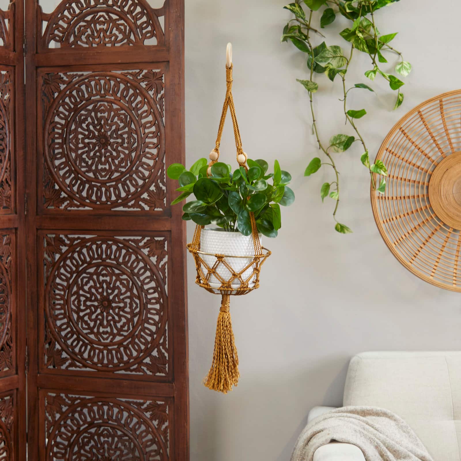 29" Brown Fabric Handmade Hanging Macrame Wall Planter