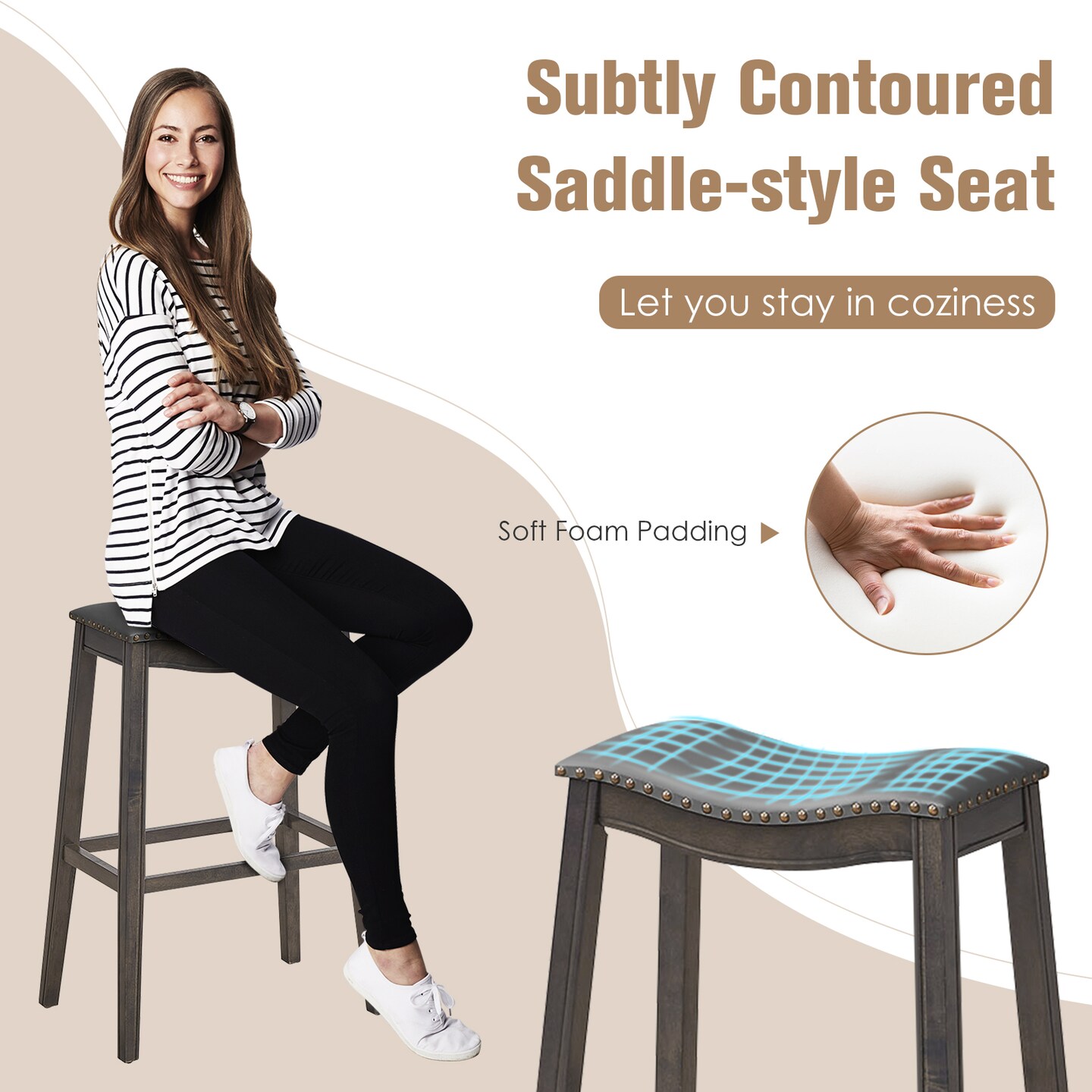 29 Inch Set of 2 Backless Wood Nailhead Barstools with PVC Leather Seat
