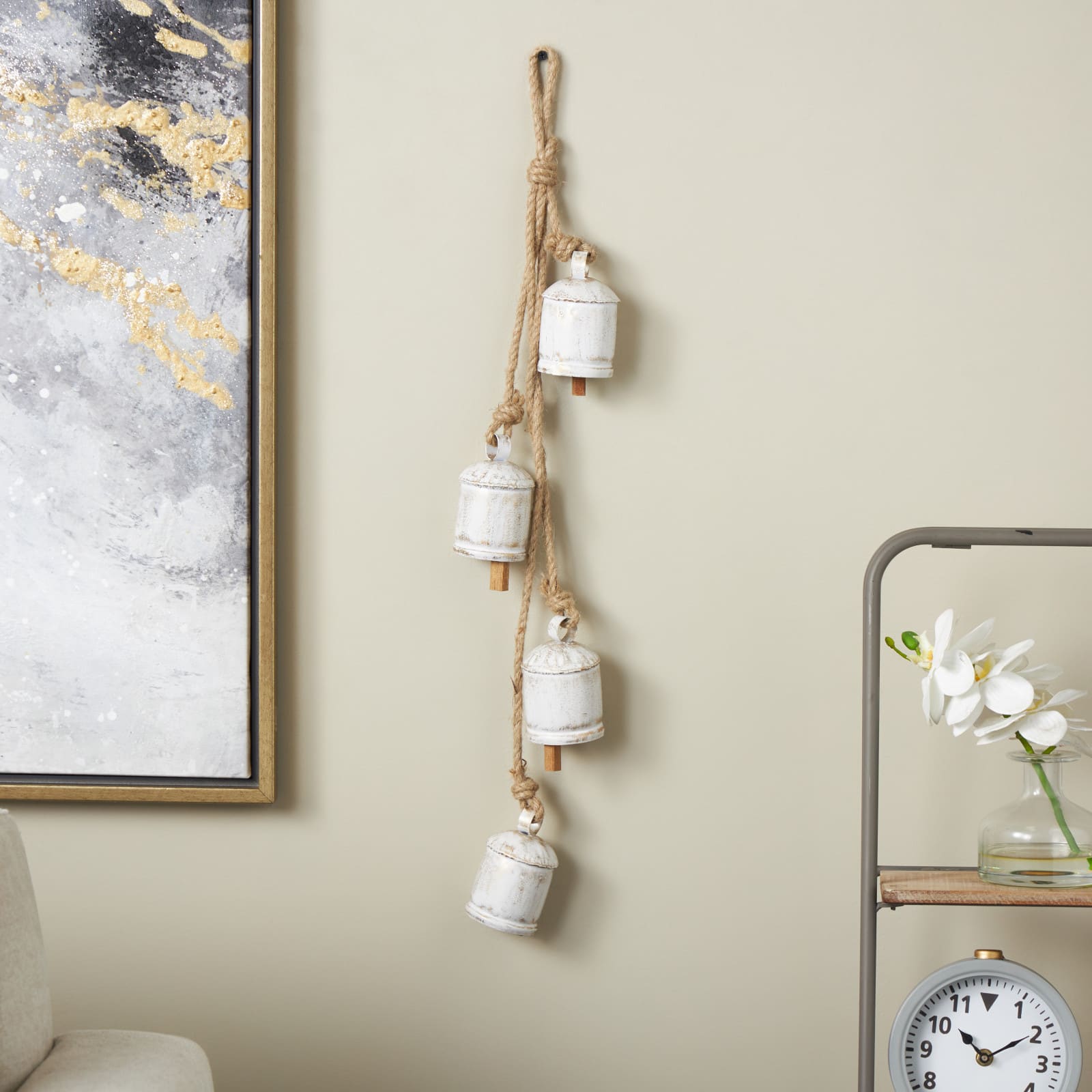 29" Metal Decorative Bell Cluster with Jute Hanging Rope