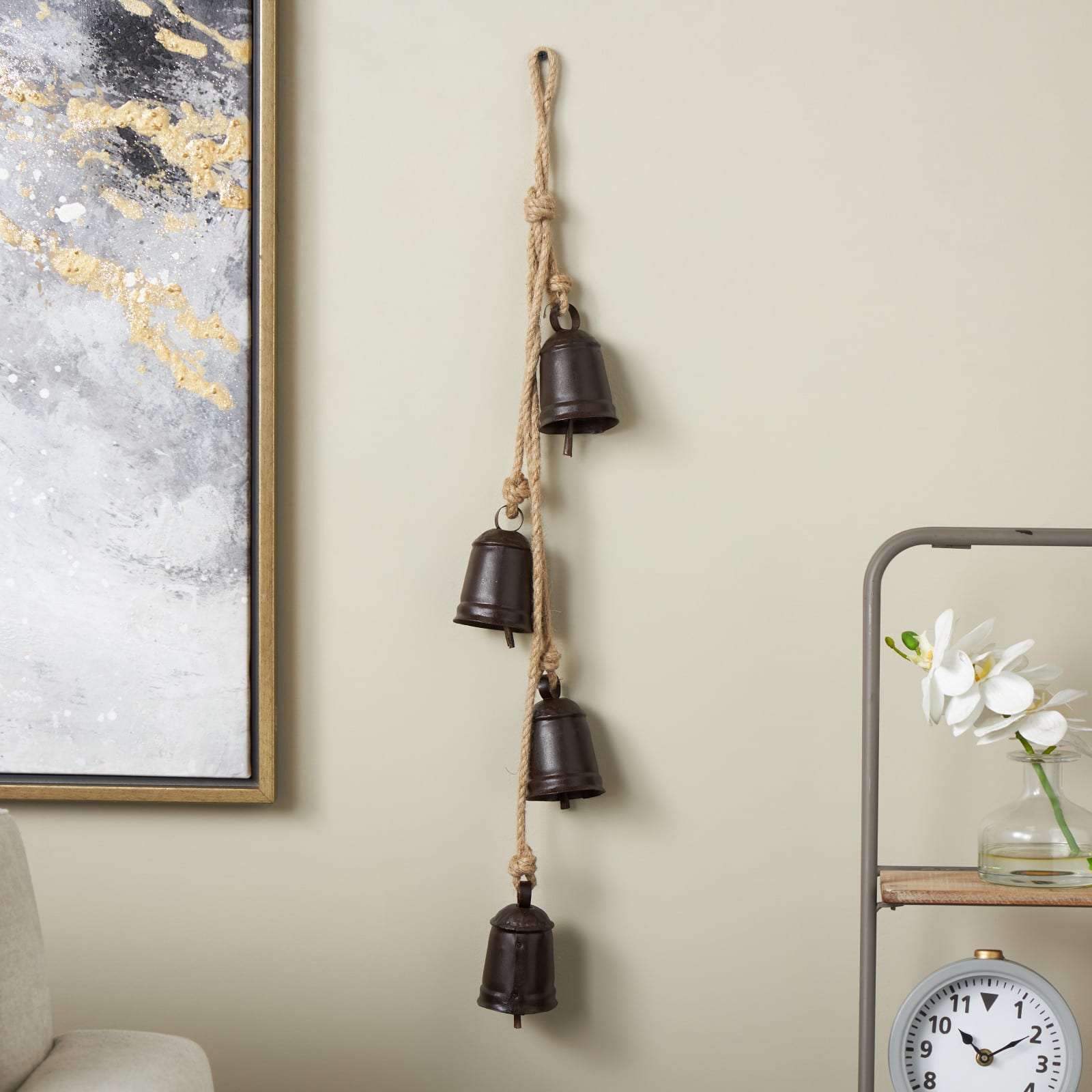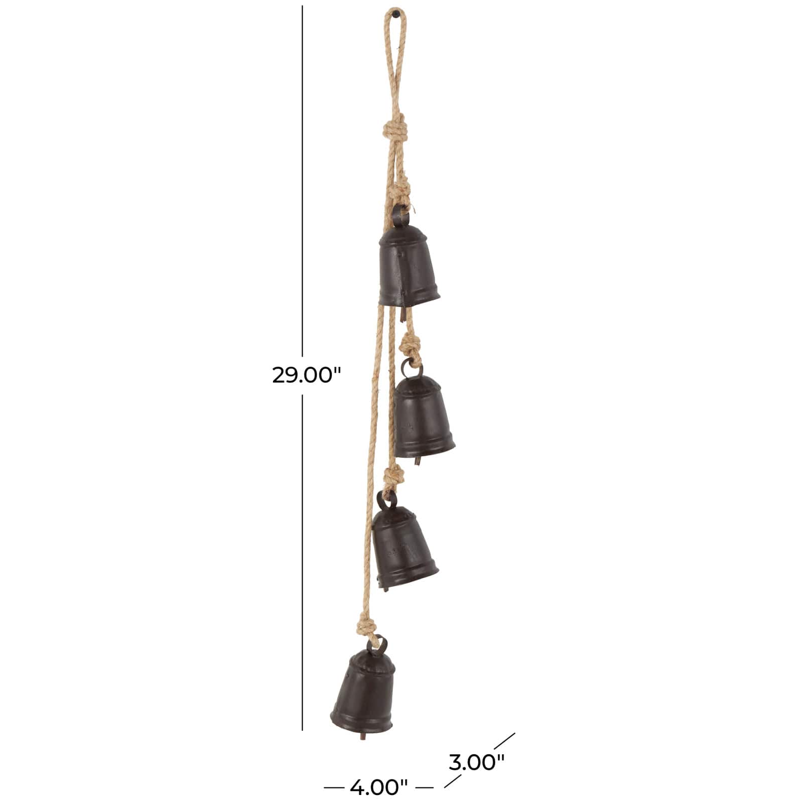 29" Metal Handmade Decorative Cow Bell with Jute Hanging Rope