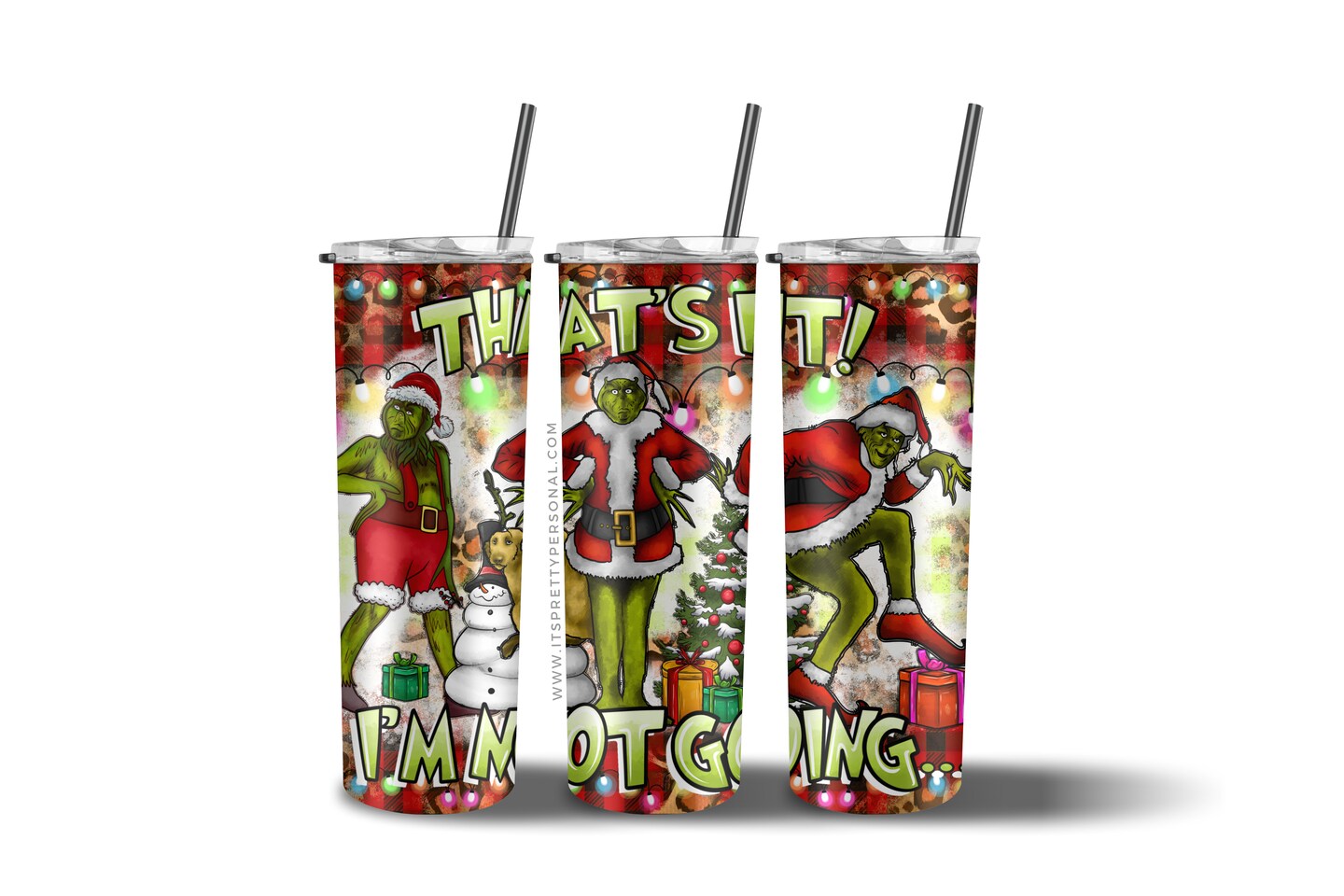 #294 CLEAR 20oz- Mean Green Classic Christmas- Not going- 9.4" x 8" Pattern Vinyl Wrap
