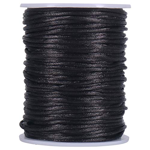 295 Feet 2mm Black Nylon String for Jewelry Making, Silky Rattail Cord for Bracelets, Necklaces, Macrame Keychains, Lanyards, Beading