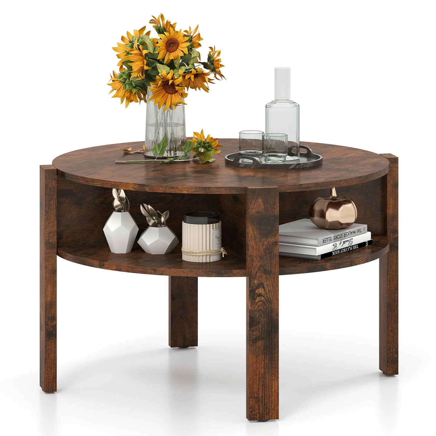 29.5 Inch Round Coffee Table with Storage Shelves for Small Living Spaces