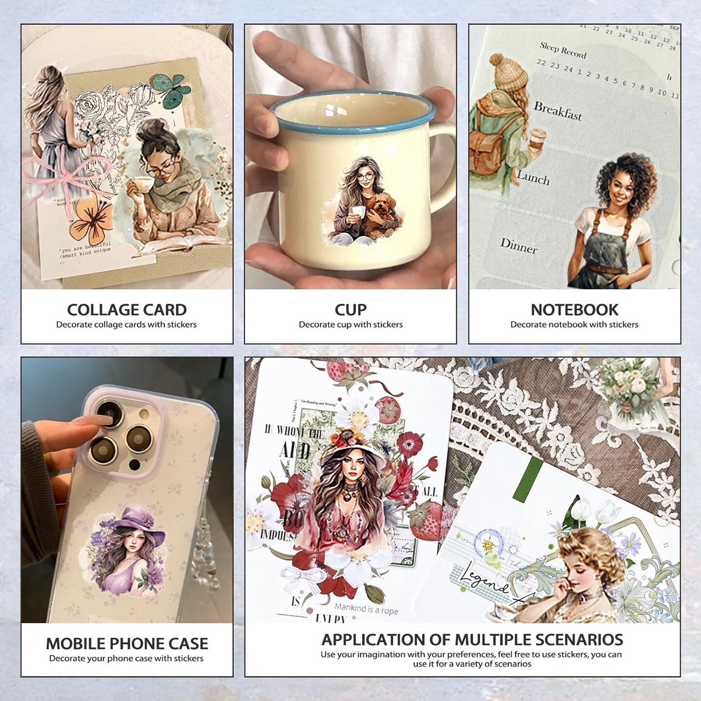 299 Pcs Aesthetics Stickers for Journaling Scrapbooking (People Sticker Book) 5.91 x 4.14 x 0.2 inches