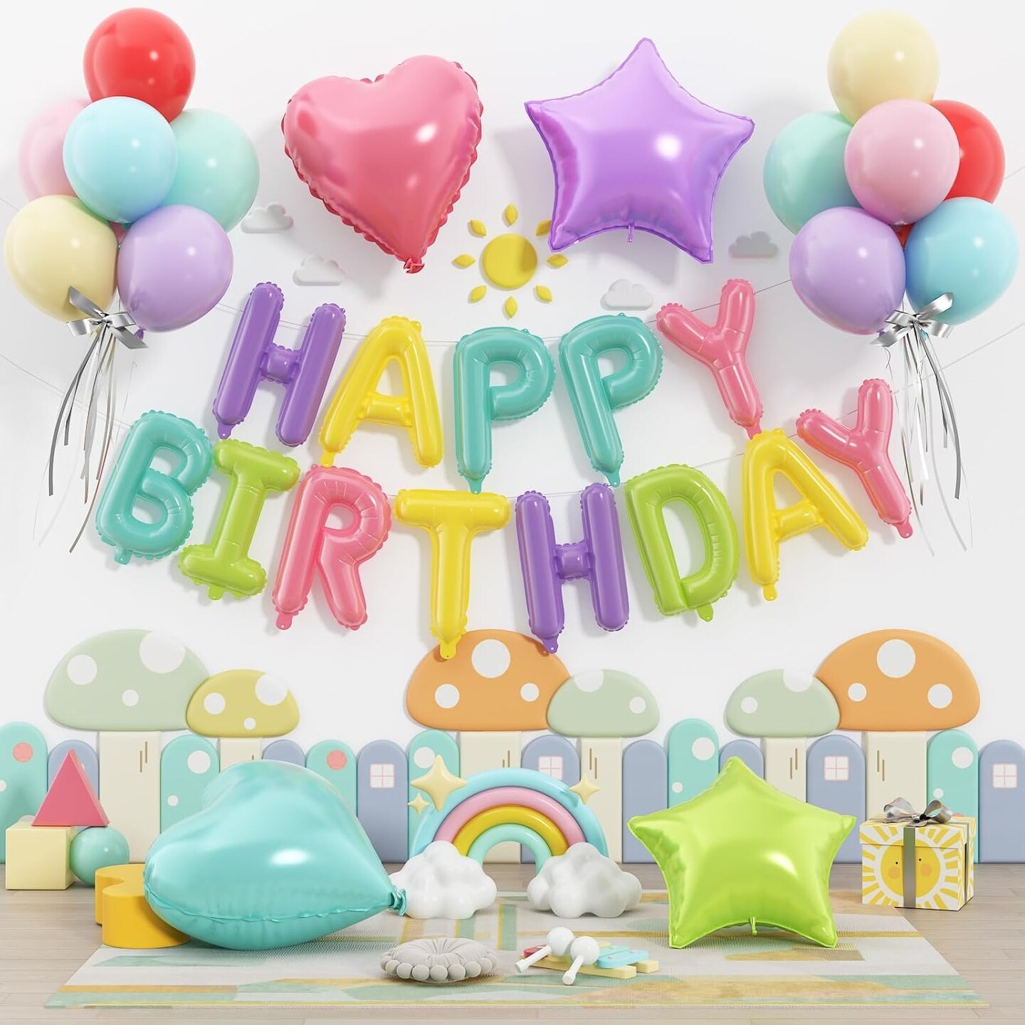 29PC Pastel Rainbow Happy Birthday Balloon Set – 16" Foil Letter Banner with Macaron Latex Balloons, 18" Star & Heart Foil Balloons – Colorful Birthday Decorations for Girls, Women, Kids & Party Themes (Macaron Rainbow)