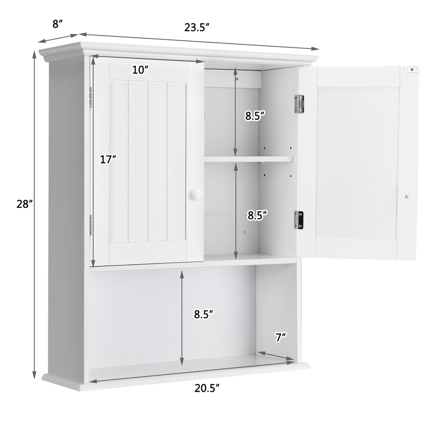 2-Door Wall Mount Bathroom Storage Cabinet with Open Shelf
