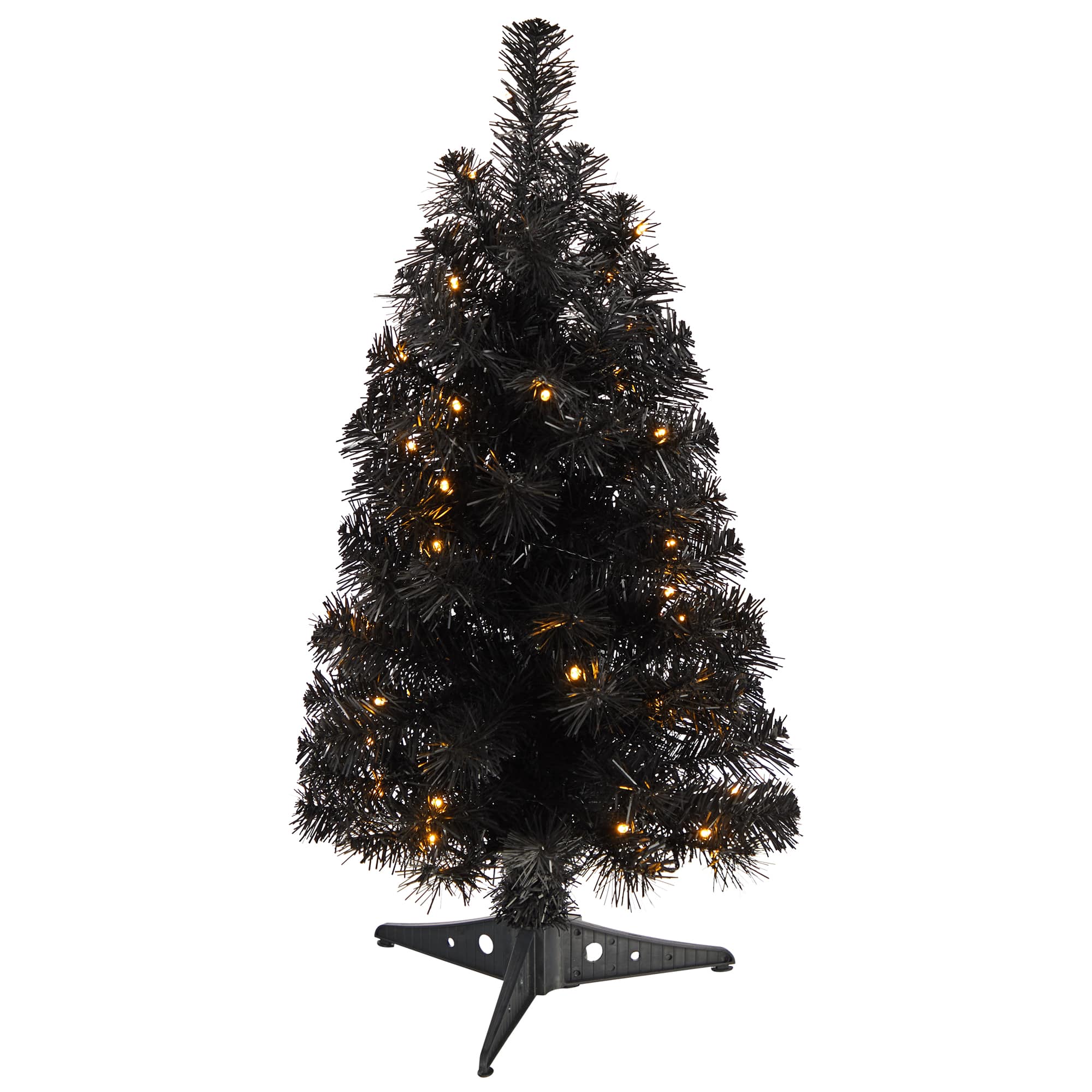 2ft. Pre-Lit Black Artificial Christmas Tree, Warm White LED Lights