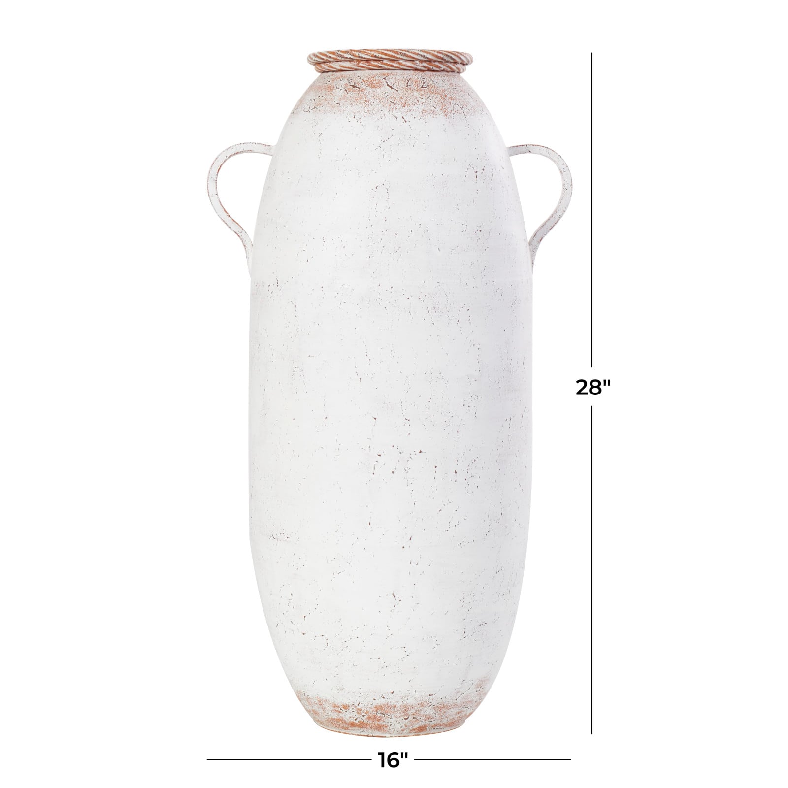 2ft. White Metal Antique Style Vase with Terra Cotta Accents & Handles