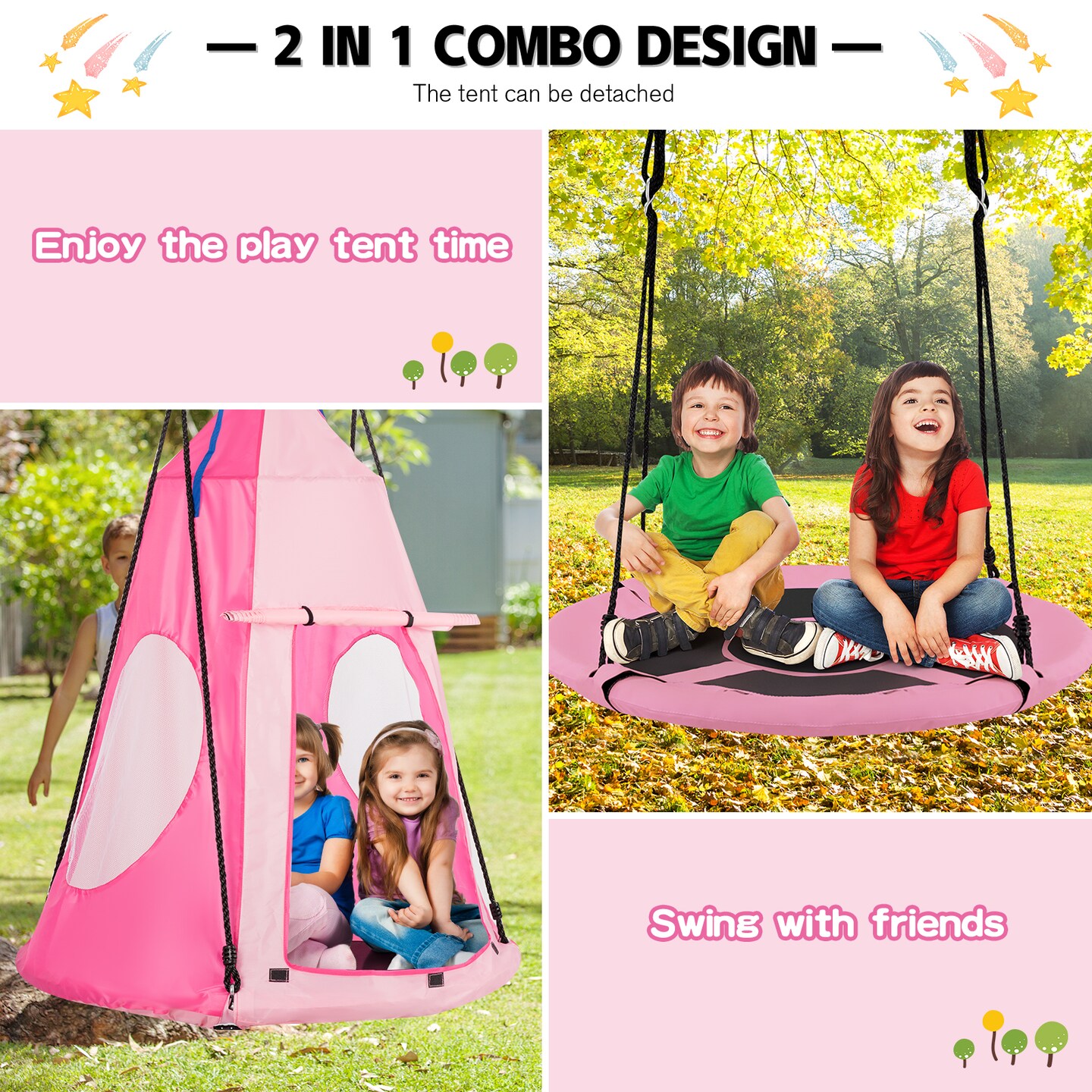 2-in-1 40 Inch Kids Hanging Chair Detachable Swing Tent Set