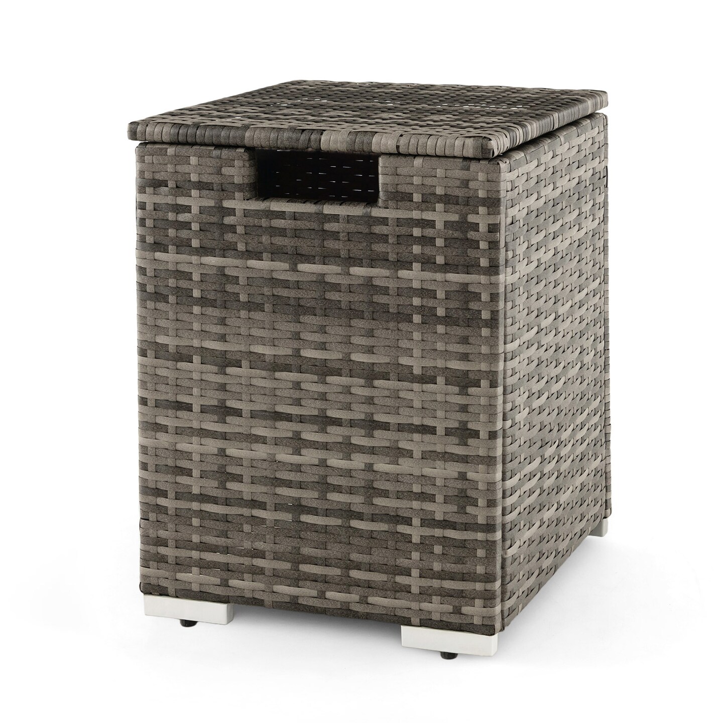 2-in-1 Multi-functional PE Wicker Propane Tank Cover Table with Metal Frame and Adjustable Foot pads