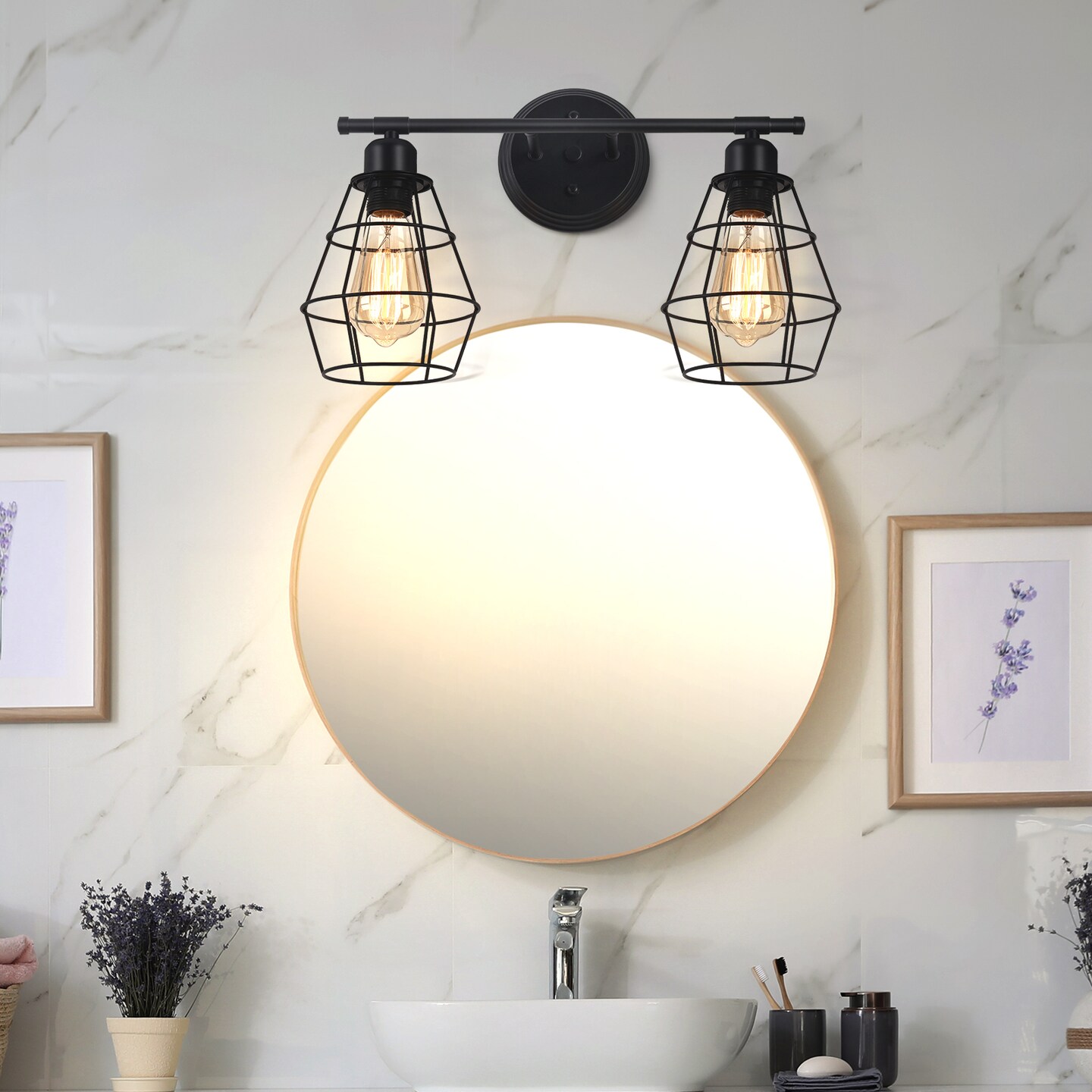 2-Light Industrial Vanity Light Rustic Wall Sconce for Bathroom, Farmhouse, or Kitchen Durable Metal Fixture with Adjustable Lighting, Easy Installation