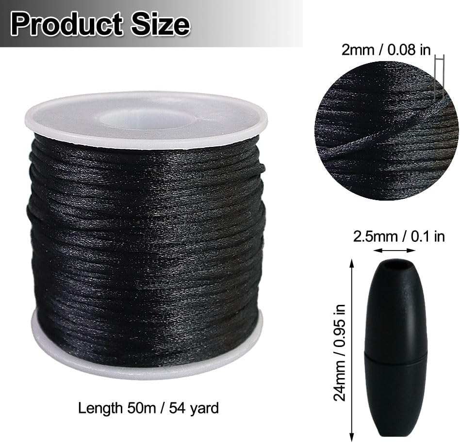 2mm Nylon Cord for Bracelets,Necklace,Jewellry Making Craft String Kit (Black)