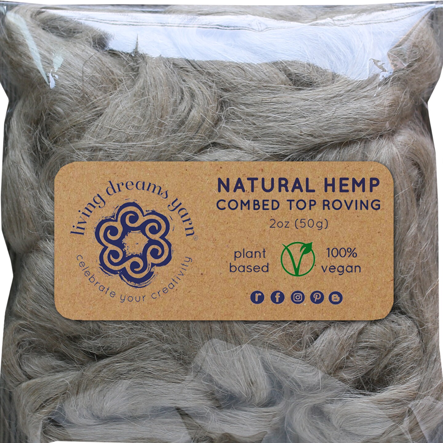 2oz Natural Hemp Fiber: Undyed Combed Top Roving - Dyeing, Spinning, Blending, Felting, Weaving. Plant Based, Eco Friendly, Vegan